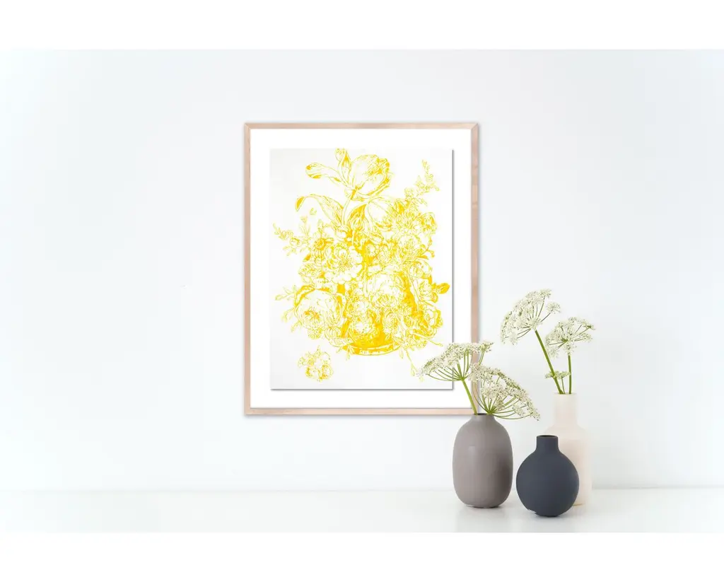 Exclusive to One Kings Lane: Impressive detailing and a brilliant yellow palette make this still life of an abundant floral arrangement both classic and contemporary. The work arrives framed and ready to hang.Not only is Thomas Little an acclaimed garden designer, but he's also an artist. Nineteenth-century botanical prints were his original inspiration, and his paintings reflect a love of the old as well as a joy in embracing the new.