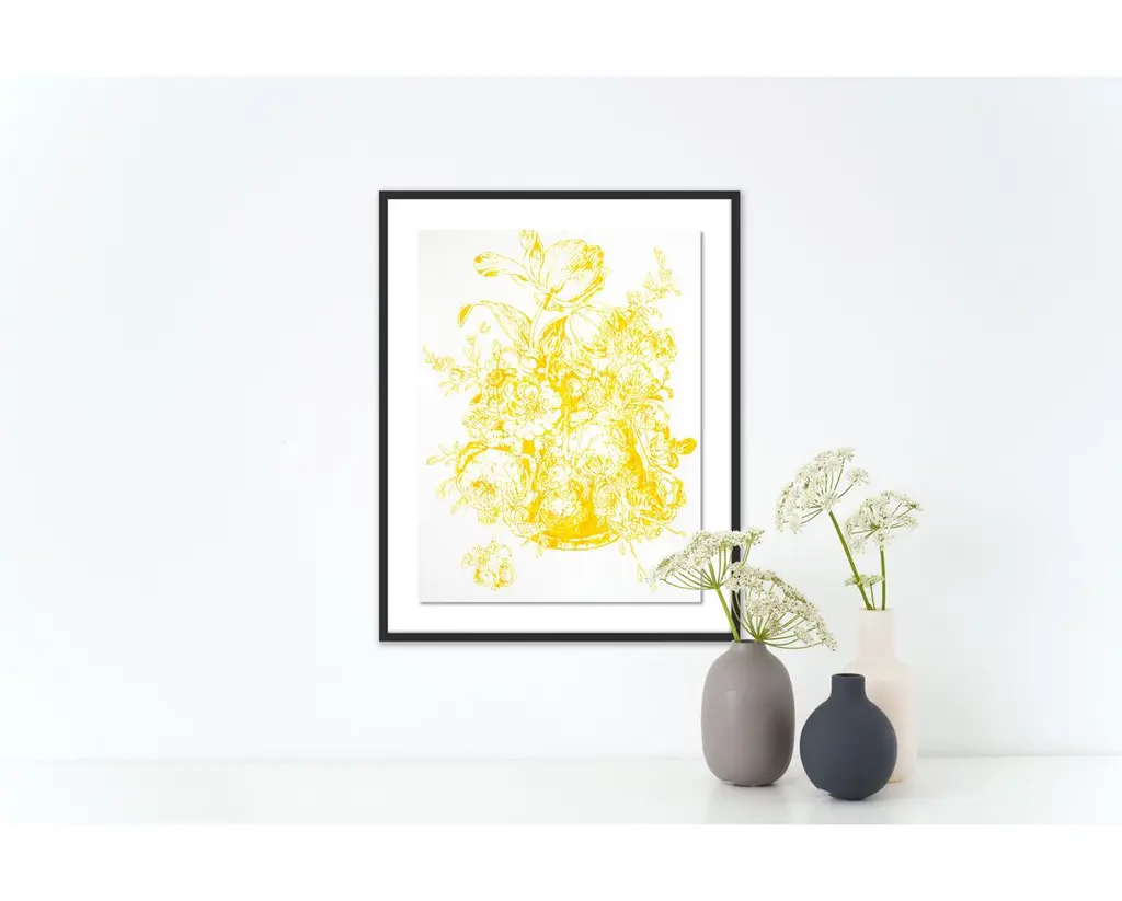 Exclusive to One Kings Lane: Impressive detailing and a brilliant yellow palette make this still life of an abundant floral arrangement both classic and contemporary. The work arrives framed and ready to hang.Not only is Thomas Little an acclaimed garden designer, but he's also an artist. Nineteenth-century botanical prints were his original inspiration, and his paintings reflect a love of the old as well as a joy in embracing the new.