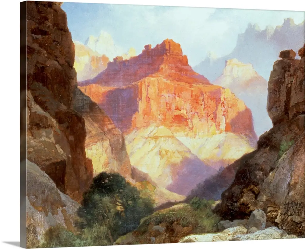 18" x 27" Thomas Moran A Miracle of Nature gallery wrap premium canvas print reproduced to meet museum quality standards. Our Museum quality canvas prints are produced using high-precision print technology for a more accurate reproduction printed on high quality canvas with fade-resistant, archival inks. Our progressive business model allows us to offer works of art to you at the best wholesale pricing, significantly less than art gallery prices, affordable to all. This artwork is hand stretched onto wooden stretcher bars by one of our expert framers. Our gallery wrap canvas print comes with hardware, ready to hang on your wall. We present a comprehensive collection of exceptional canvas art reproductions by Thomas Moran .