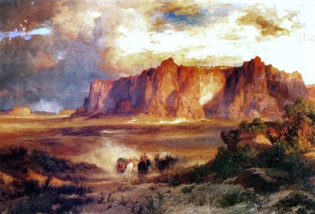 18" x 27" Thomas Moran Cliffs of the Upper Colorado River gallery wrap premium canvas print reproduced to meet museum quality standards. Our Museum quality canvas prints are produced using high-precision print technology for a more accurate reproduction printed on high quality canvas with fade-resistant, archival inks. Our progressive business model allows us to offer works of art to you at the best wholesale pricing, significantly less than art gallery prices, affordable to all. This artwork is hand stretched onto wooden stretcher bars by one of our expert framers. Our gallery wrap canvas print comes with hardware, ready to hang on your wall. We present a comprehensive collection of exceptional canvas art reproductions by Thomas Moran.