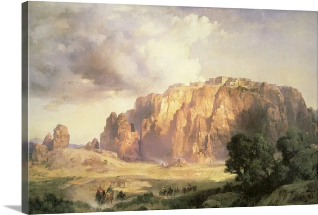 18" x 27" Thomas Moran Indians at the Green River gallery wrap premium canvas print reproduced to meet museum quality standards. Our Museum quality canvas prints are produced using high-precision print technology for a more accurate reproduction printed on high quality canvas with fade-resistant, archival inks. Our progressive business model allows us to offer works of art to you at the best wholesale pricing, significantly less than art gallery prices, affordable to all. This artwork is hand stretched onto wooden stretcher bars by one of our expert framers. Our gallery wrap canvas print comes with hardware, ready to hang on your wall. We present a comprehensive collection of exceptional canvas art reproductions by Thomas Moran.