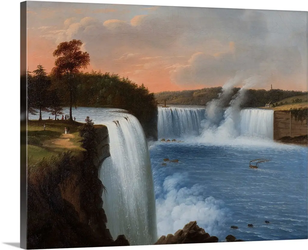 15" x 30" Thomas Moran Looking over Niagara Falls gallery wrap premium canvas print reproduced to meet museum quality standards. Our Museum quality canvas prints are produced using high-precision print technology for a more accurate reproduction printed on high quality canvas with fade-resistant, archival inks. Our progressive business model allows us to offer works of art to you at the best wholesale pricing, significantly less than art gallery prices, affordable to all. This artwork is hand stretched onto wooden stretcher bars by one of our expert framers. Our gallery wrap canvas print comes with hardware, ready to hang on your wall. We present a comprehensive collection of exceptional canvas art reproductions by Thomas Moran.