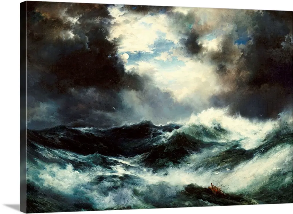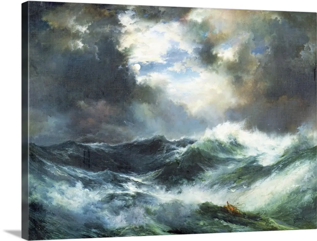 18" x 27" Thomas Moran Sunset near Land-s End- Cornwall- England gallery wrap premium canvas print reproduced to meet museum quality standards. Our Museum quality canvas prints are produced using high-precision print technology for a more accurate reproduction printed on high quality canvas with fade-resistant, archival inks. Our progressive business model allows us to offer works of art to you at the best wholesale pricing, significantly less than art gallery prices, affordable to all. This artwork is hand stretched onto wooden stretcher bars by one of our expert framers. Our gallery wrap canvas print comes with hardware, ready to hang on your wall. We present a comprehensive collection of exceptional canvas art reproductions by Thomas Moran .