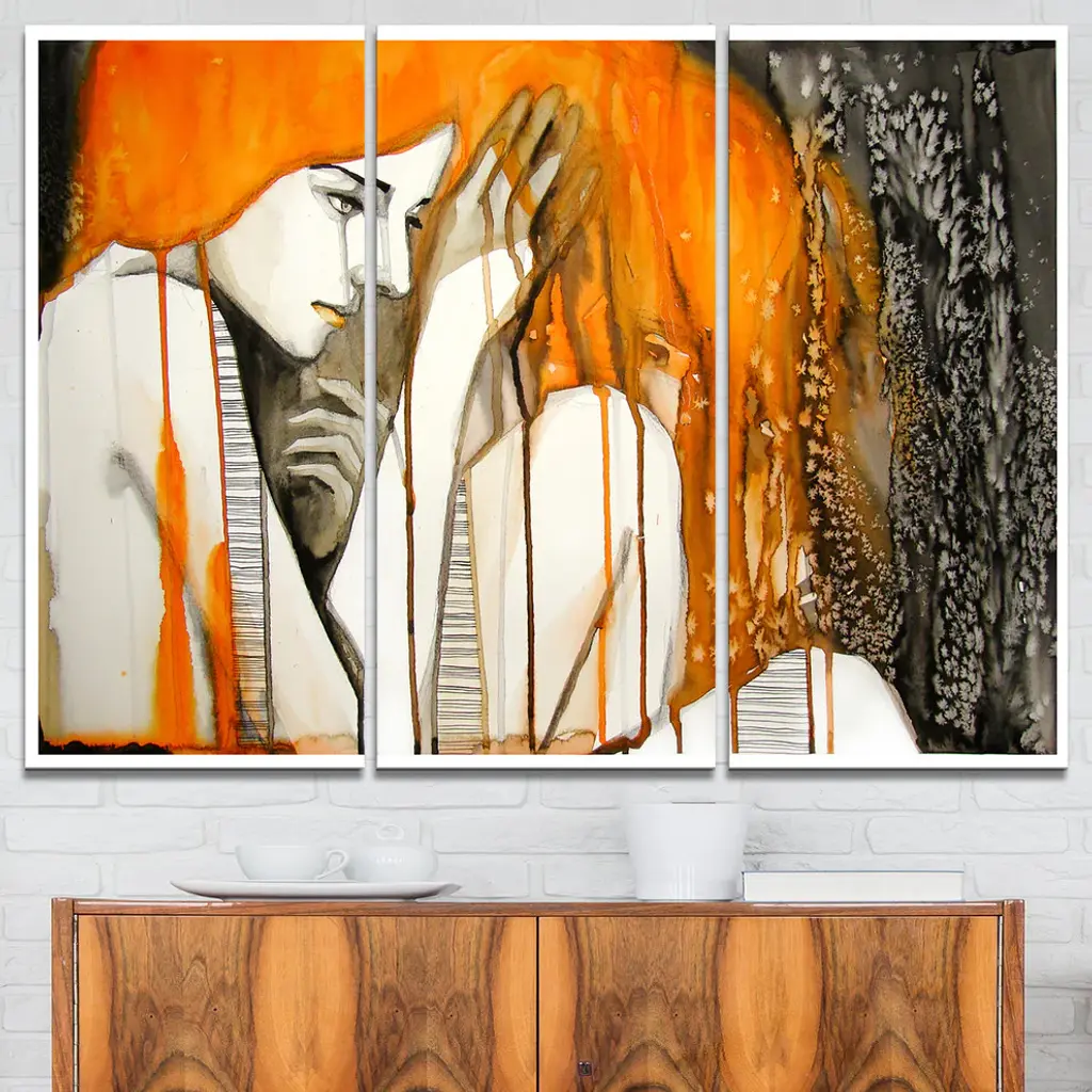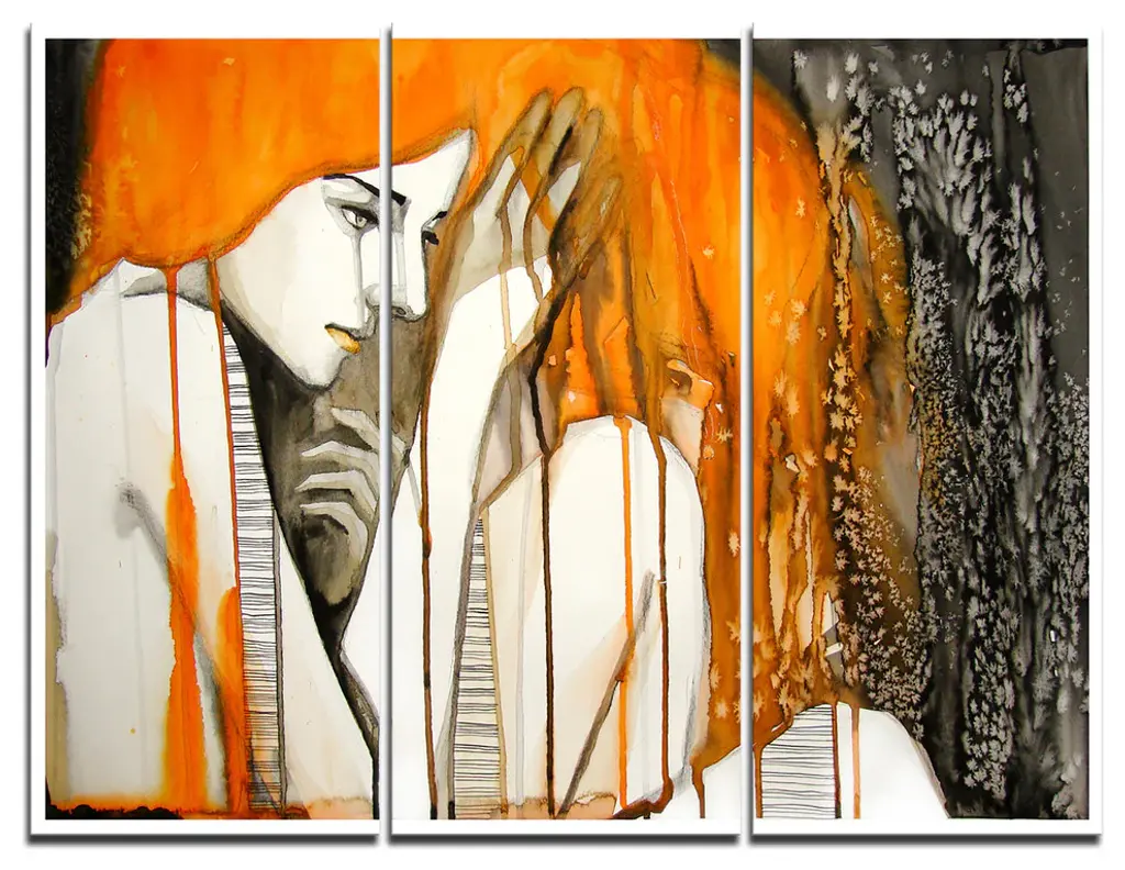 "Thoughtful Girl Illustration" Glossy Metal Wall Art, 3 Panels, 36"x28"