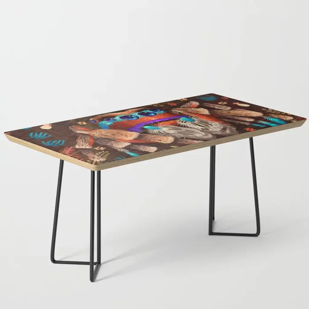 35.75" x 17.75" x 17" (H)Baltic birch table top with beveled edgeHigh quality print with satin finishSteel legs available in black or goldAssembly requiredEvery order is made just for youSHIPPING: Items are made to order and typically ship within 3-4 business days. Click here for more information about delivery options.Furniture sales are final. Click here for more information on returns.