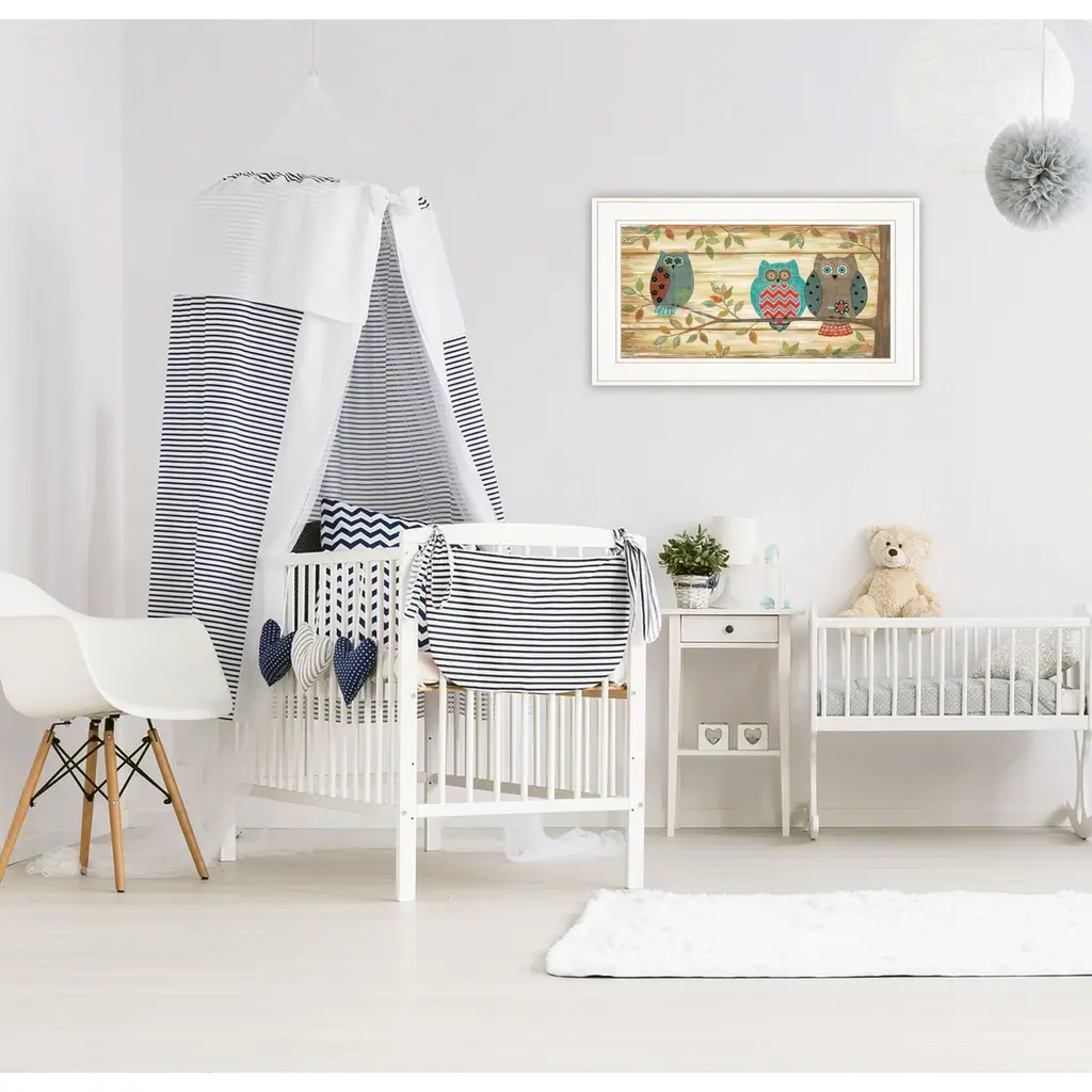 Bring some sizzle to your space with this eye-catching three wise owls 2 white framed print wall art. Update your walls with this woodland animal decor. This print is a visual artistic expression that allows you to decorate your space in style. Reproduced for you on paper, this hanging decorative accent will be a trendy and fashionable way to dress your walls. Hang on your wall to add some up to date fashion and decoration. Utilize this opportunity to create a focal point in the room with this fabulous wall decor option. 12" H x 21" W x 1" D
