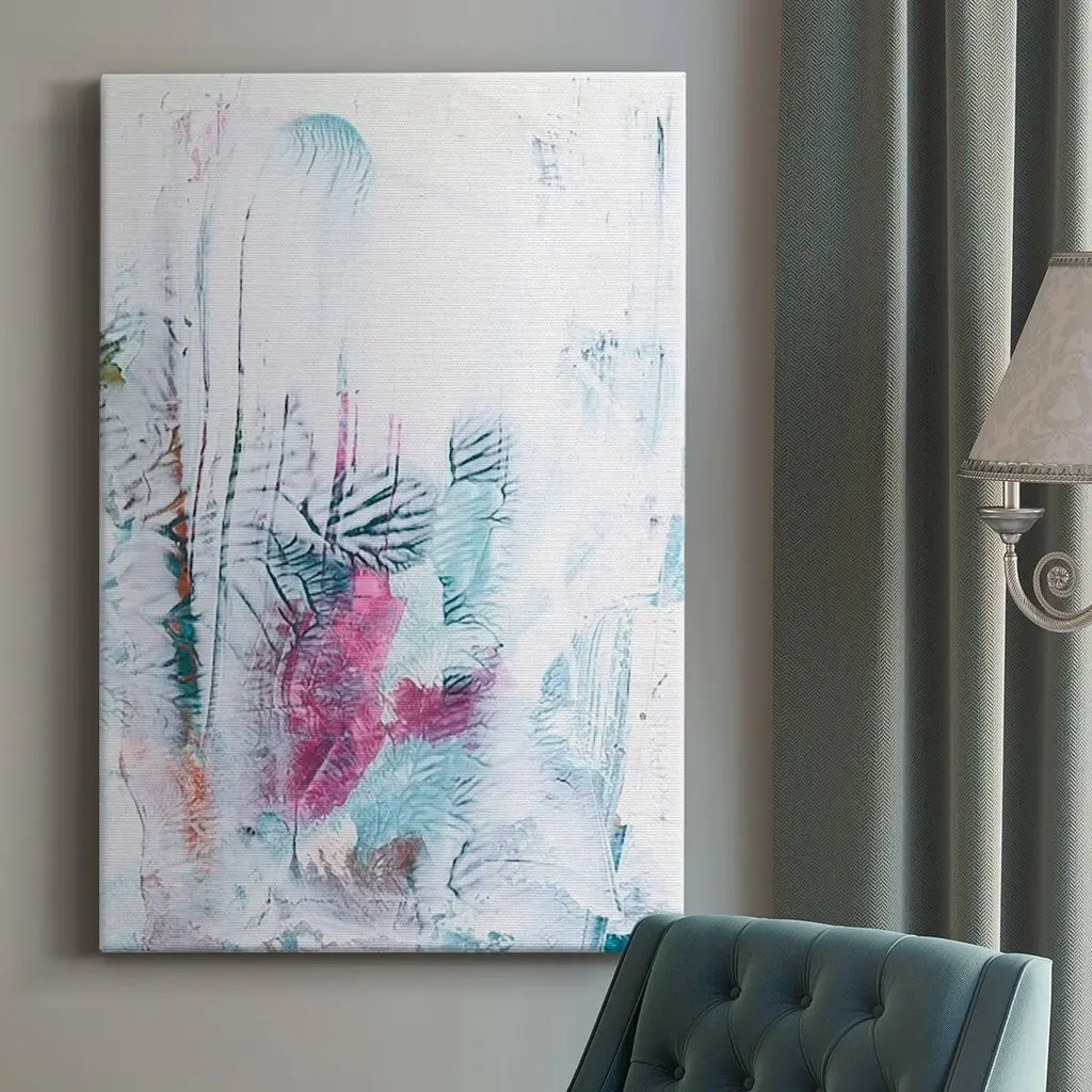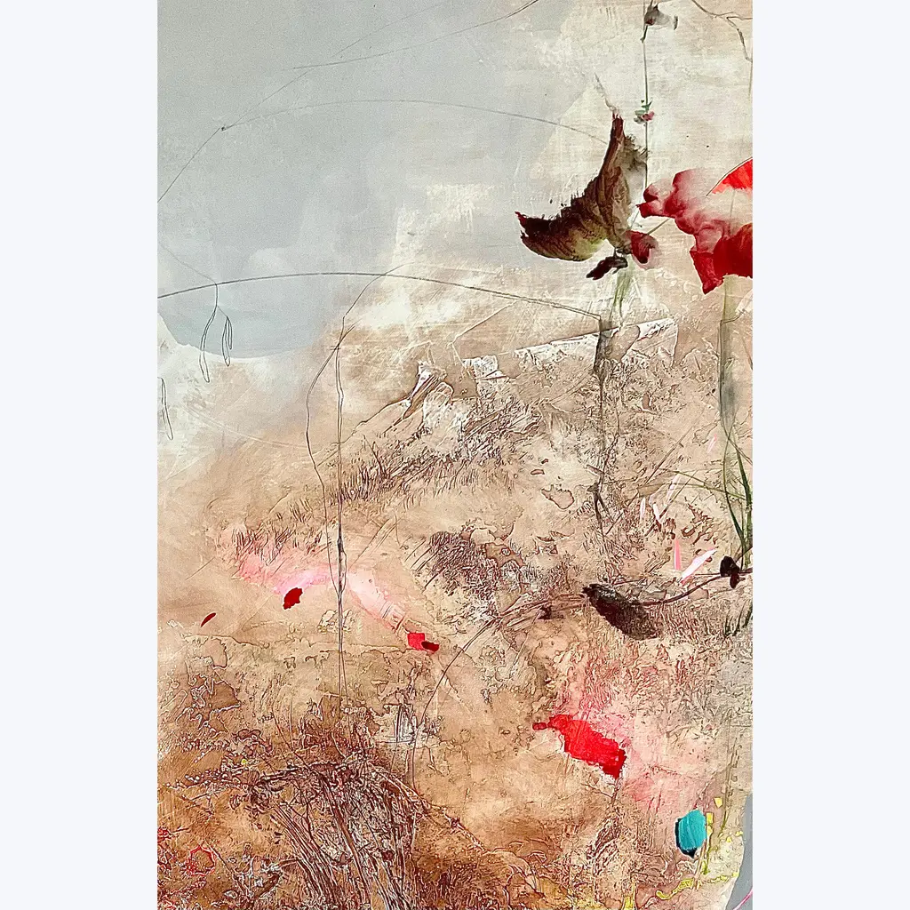 The intricate, abstract design in Through the moon VII is a stunning display of visual impact that features muted grey tones harmonizing with various shades of brown and hints of black, purple, pink and green. This breathtaking work of art by Beata Pankiewicz is a study in duality that shifts between manmade and natural worlds as raw texture contrasts with intricate whimsy and organic imperfections. The complexity and abstract nature of her art allows for layers of surprise and discovery that reflect her own creative process.