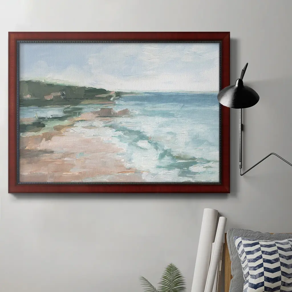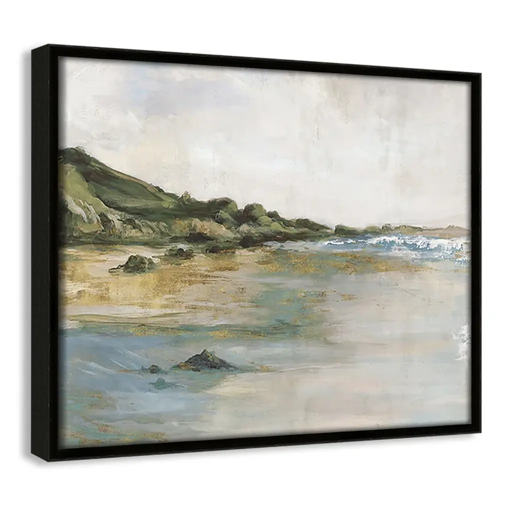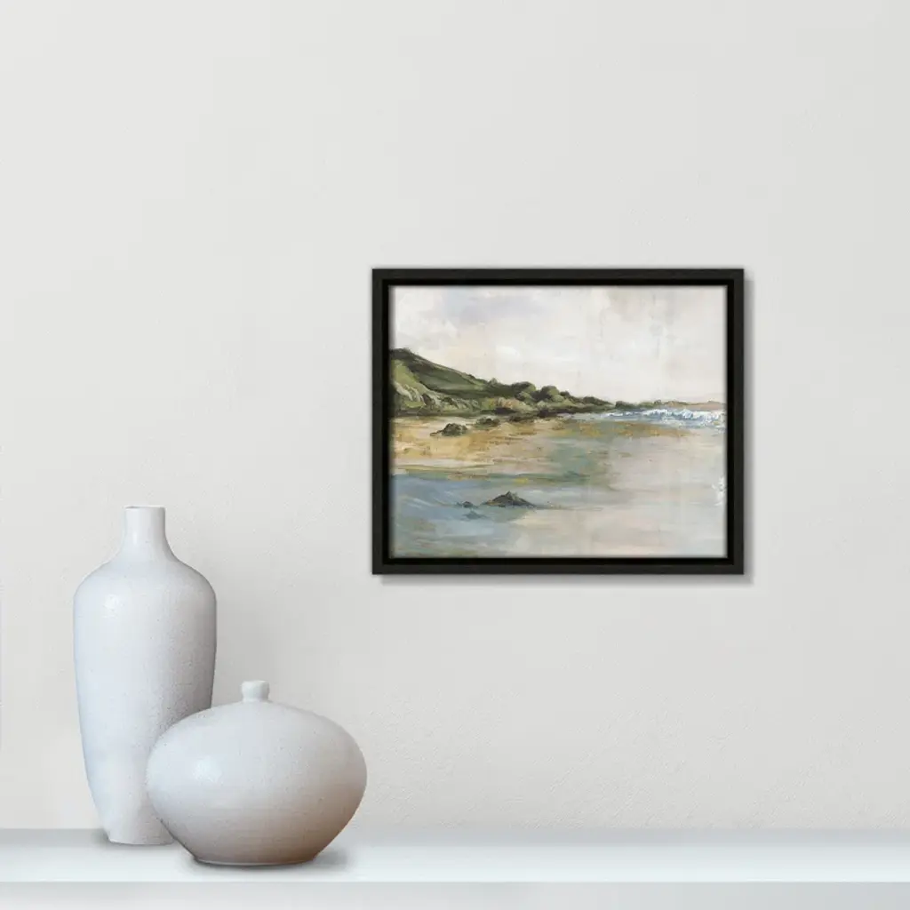 Add a touch of coastal elegance with "Tide’s Edge," a breathtaking depiction of nature's meeting point between land and sea. Handcrafted to order in the USA, this artwork features archival gallery-quality materials and customizable size and frame options, making it the perfect addition to any home or office. Display it as a captivating focal point above a mantel or in a serene Scandinavian-inspired setting to complement its timeless waterscape appeal. With its soothing palette and enduring design, "Tide’s Edge" enhances classic, transitional, coastal, and minimalistic décors while evoking the calming essence of the ocean's edge.