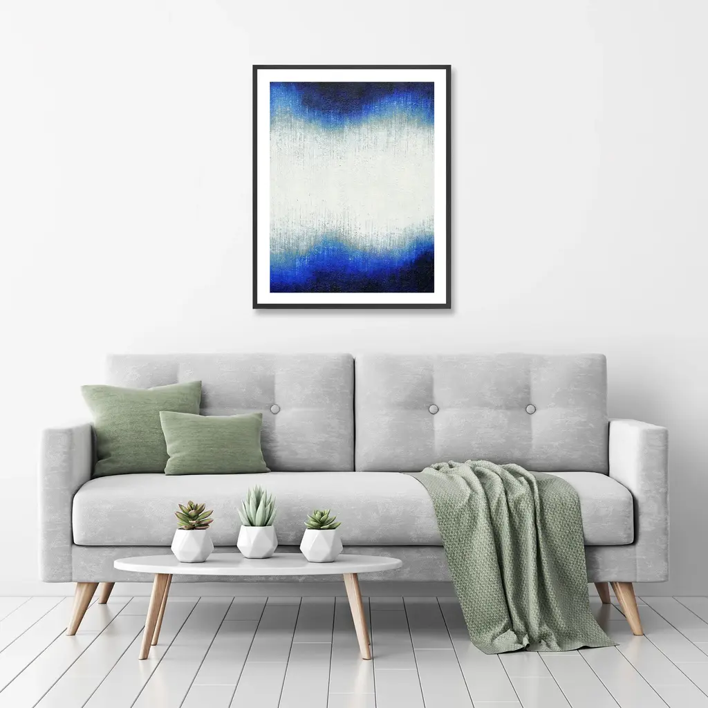 Deep dark blue tones fade out resembling the ocean in this vertical abstract wall art. The decorative Norman Wyatt artwork, 'Tides' will complement your space with its coastal and contemporary aesthetic. This piece is handcrafted in Chattanooga, Tennessee by Ready2HangArt using a locally sourced artist print, with a frame and a rear hanger for simple installation. Offering a wide range of transitional subjects and unique textures, Norman Wyatt's collections will add interest to any modern or contemporary decor.