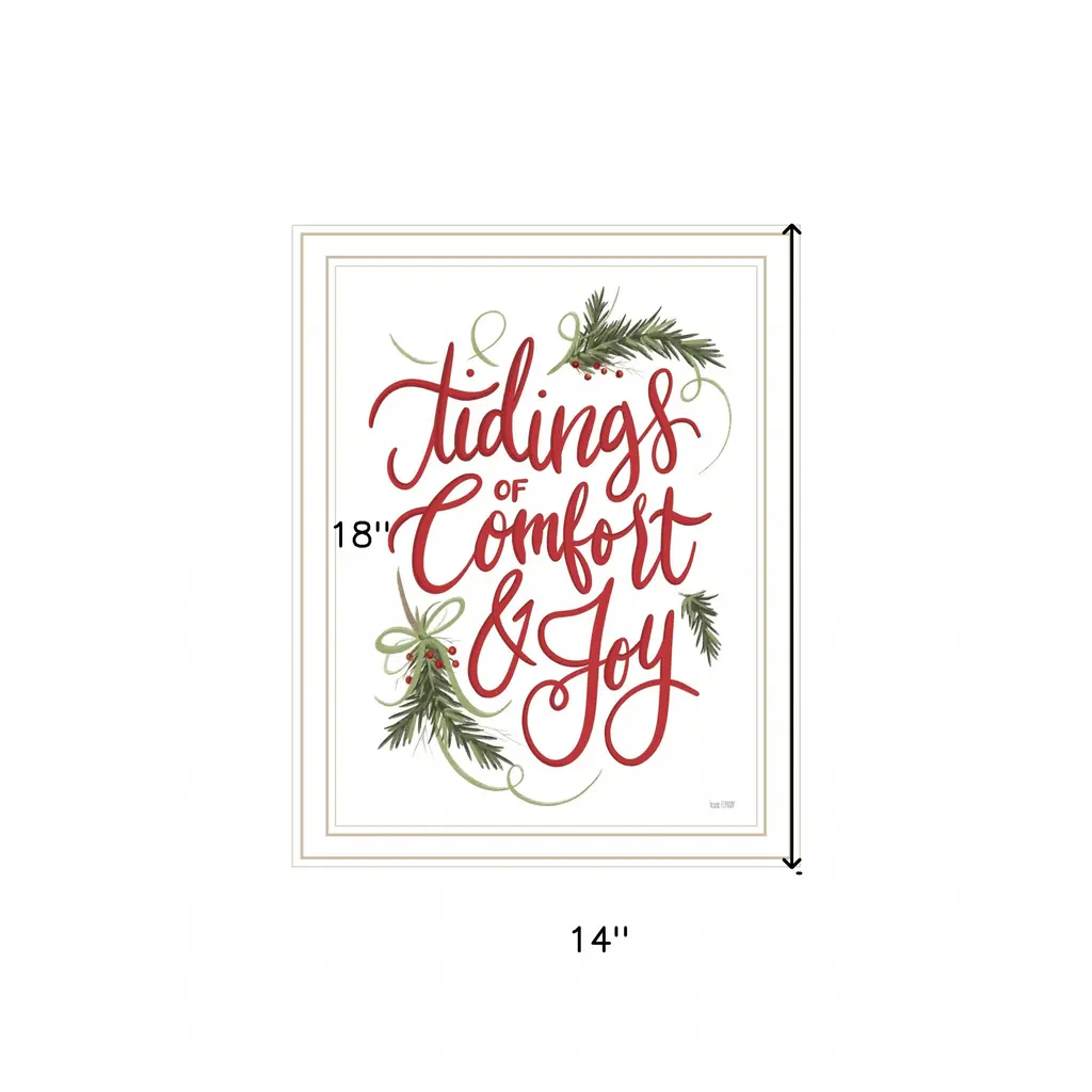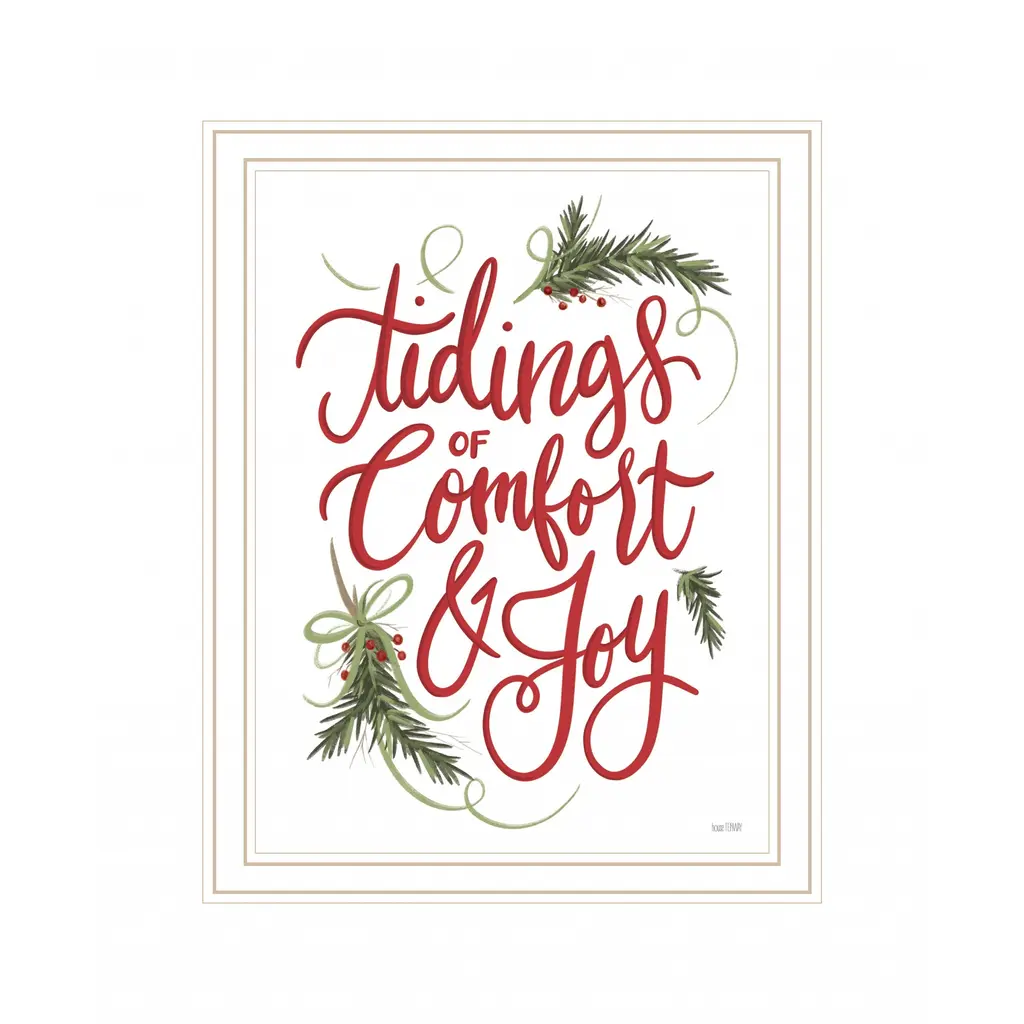 Bring some sizzle to your space with this eye-catching tidings of comfort & joy 1 white framed print wall art. This print is a visual artistic expression that allows you to decorate your space in style. Reproduced for you on wood, this hanging decorative accent will be a trendy and fashionable way to dress your walls in a rustic and modern farmhouse vibe. Adding this hanging wall art to your space to make your room feel more finished and attractive. Utilize this opportunity to create a focal point in the room with this fabulous wall decor option. 18" H x 14" W x 1" D