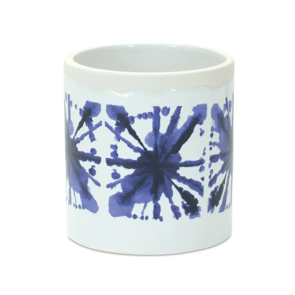 Add a splash of color and charm to your plant display with this set of Blue & White Tie-Dye Ceramic Pots. These eye-catching planters showcase a vibrant blue tie-dye pattern against a crisp white baseperfect for complementing nautical, boho, or coastal decor styles. Made of durable glazed ceramic, these pots are ideal for showcasing faux plants or floral arrangements, indoors or outdoors. Sold in a set of two assorted sizes to create a balanced and memorable display in your home or patio setting.