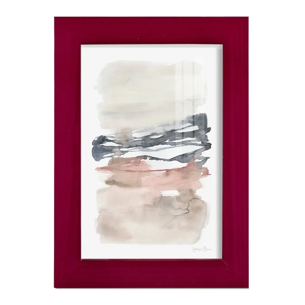 Tiered Horizon Line I -EZ SWITCH Framed Print w/glass-Cherry Red A delightful, framed print. Featuring a solid wood frame with real wood glass. This premium print is giclee quality. In addition, every frame features a removable back and table top stand. This allows you to change your art in the future or to just stand the art on a table for a new look. We are sure you'll enjoy our new series of EZ SWITCH Framed Art. Solid Wood Frame Real Glass Removable / Replaceable Art Built in Tabletop Stand Sizes range from 4x6 up to 12x15 - buy just one or pair them up as sets as you see fit.