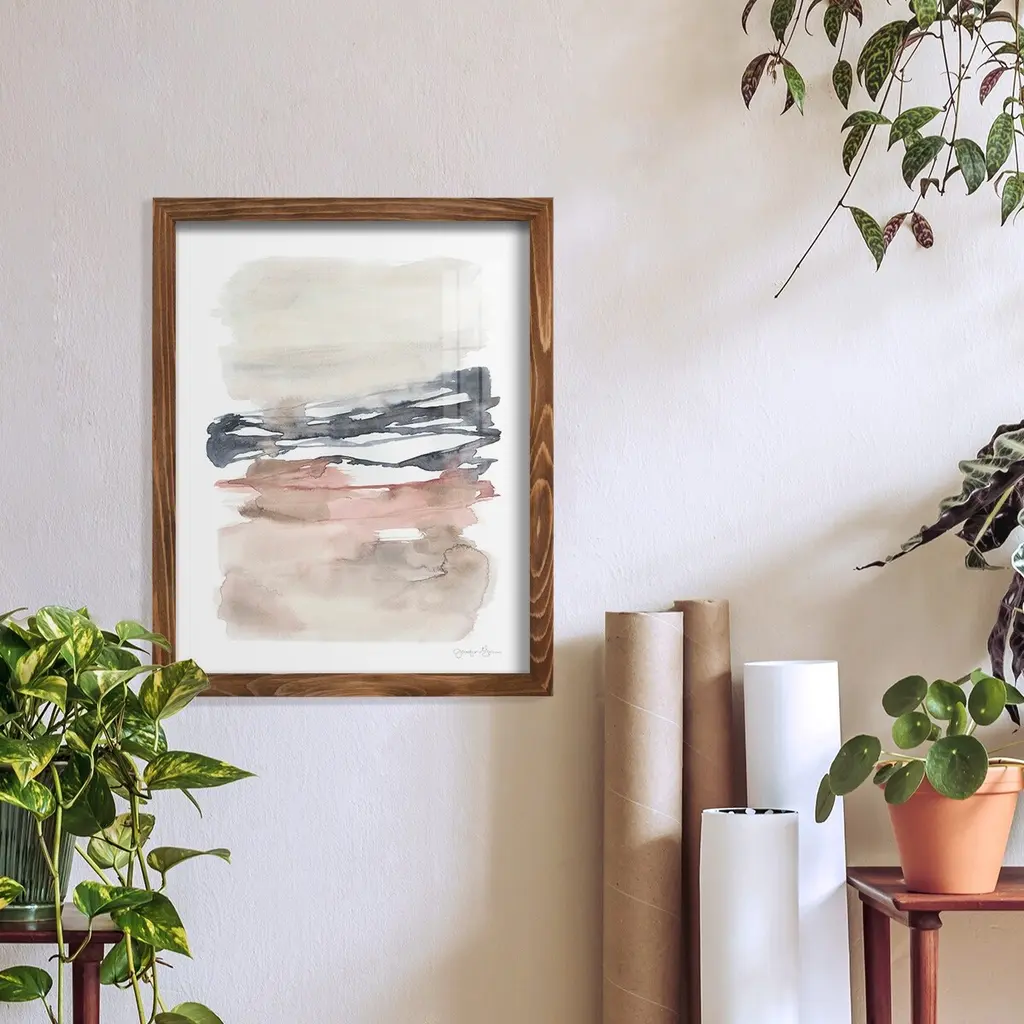 Tiered Horizon Line I -EZ SWITCH Framed Print w/glass-Cherry Red A delightful, framed print. Featuring a solid wood frame with real wood glass. This premium print is giclee quality. In addition, every frame features a removable back and table top stand. This allows you to change your art in the future or to just stand the art on a table for a new look. We are sure you'll enjoy our new series of EZ SWITCH Framed Art. Solid Wood Frame Real Glass Removable / Replaceable Art Built in Tabletop Stand Sizes range from 4x6 up to 12x15 - buy just one or pair them up as sets as you see fit.
