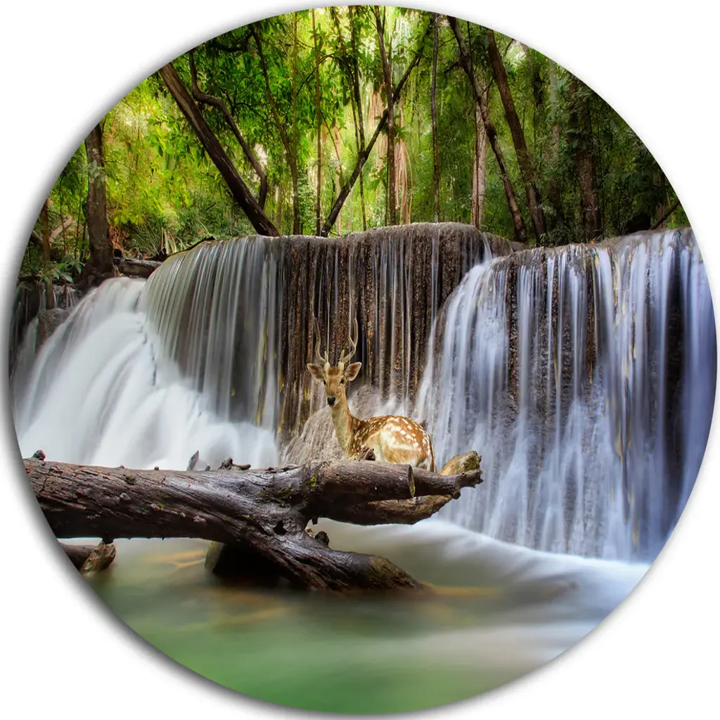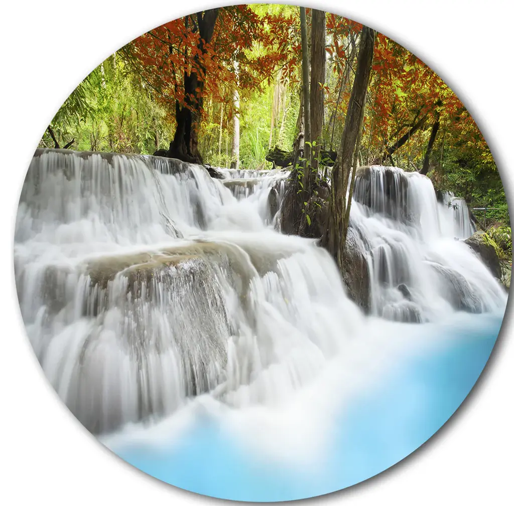 Bring Contemporary Abstraction to your home with this large Circle Metal wall art. This Tiger in the Jungle Metal Artwork makes it the focal point of any room or office. - White Gloss Coating ensures colors are extra vibrant with light reflection.- Aluminum grade Sheet Metal with 1 inch mounting frame on the back giving the illusion that the artwork is floating on the wall..- Mounting Brackets are included along with instructions.- High Quality Digital images are created directly into a glossy aluminum panel producing a stunning and captivating print into the glossy finish of the metal.- Water, Fire and Scratch resistant HD Aluminum panels.- Looks better than any photo paper and guaranteed to last at least 20 years- Easy to clean with a microfiber cloth. Colors are far superior to regular Canvas Art. - Easy to Hang
