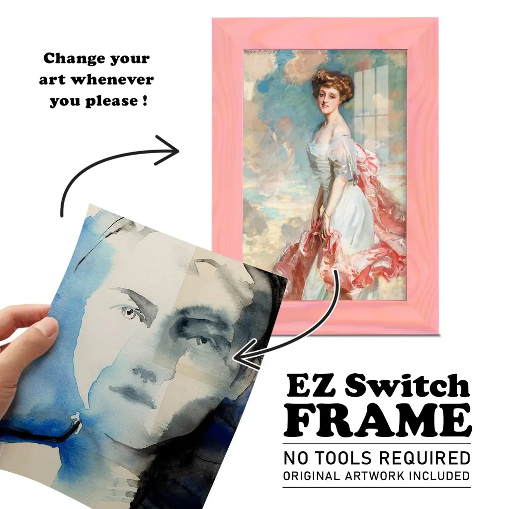 Tilda's Gaze I -EZ SWITCH Framed Print w/glass-Cherry Red A delightful, framed print. Featuring a solid wood frame with real wood glass. This premium print is giclee quality. In addition, every frame features a removable back and table top stand. This allows you to change your art in the future or to just stand the art on a table for a new look. We are sure you'll enjoy our new series of EZ SWITCH Framed Art. Solid Wood Frame Real Glass Removable / Replaceable Art Built in Tabletop Stand Sizes range from 4x6 up to 12x15 - buy just one or pair them up as sets as you see fit.