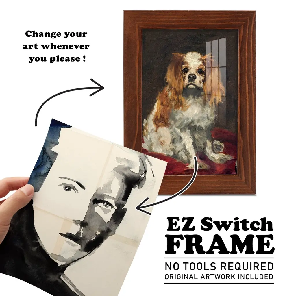 Tilda's Gaze III -EZ SWITCH Framed Print w/glass-Cherry Red A delightful, framed print. Featuring a solid wood frame with real wood glass. This premium print is giclee quality. In addition, every frame features a removable back and table top stand. This allows you to change your art in the future or to just stand the art on a table for a new look. We are sure you'll enjoy our new series of EZ SWITCH Framed Art. Solid Wood Frame Real Glass Removable / Replaceable Art Built in Tabletop Stand Sizes range from 4x6 up to 12x15 - buy just one or pair them up as sets as you see fit.