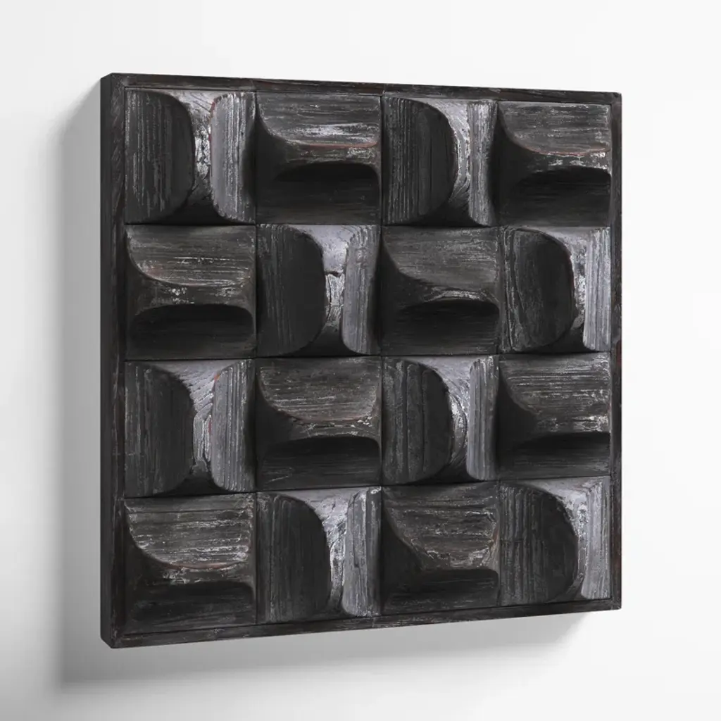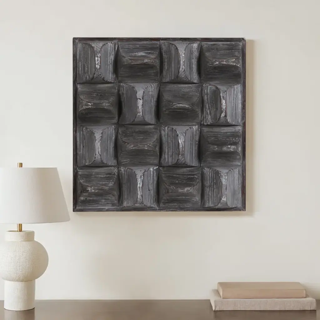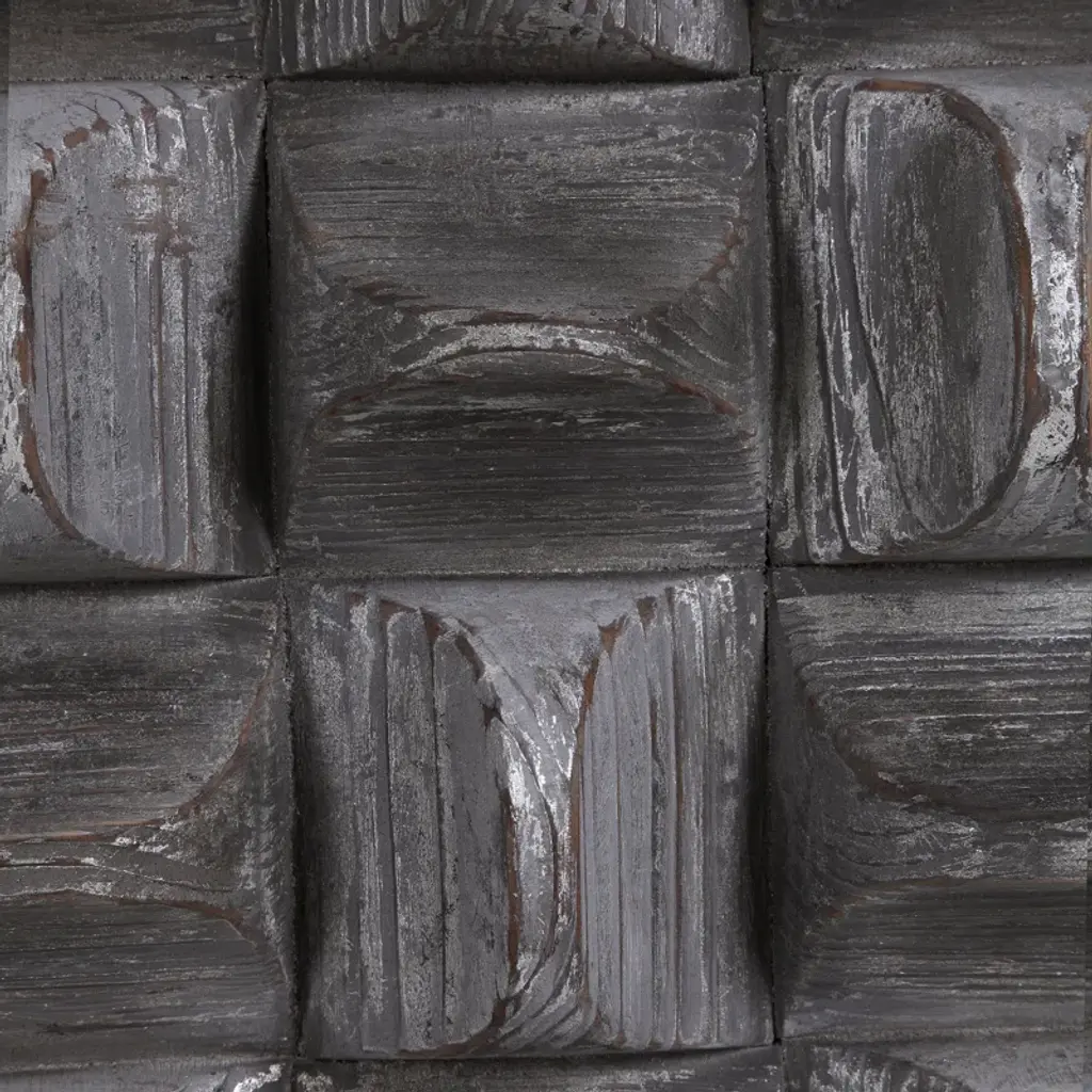 A Contemporary Take On Rustic Decor, This Wood Wall Panel Features 3-dimensional Scooped Fir Wood Blocks With A Distressed, Aged Gray Wash And Silver Highlights.