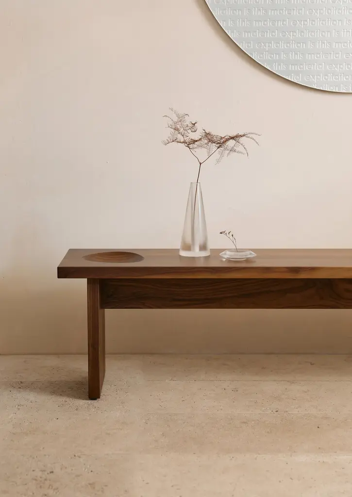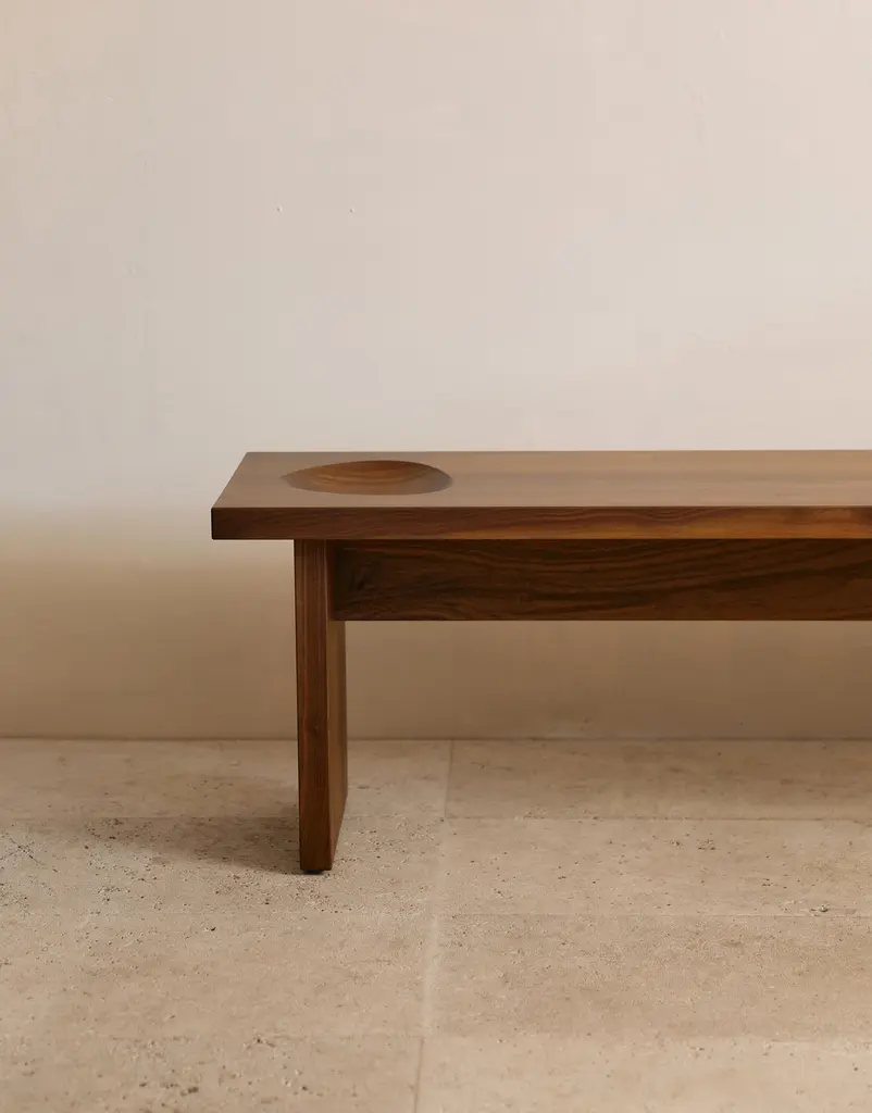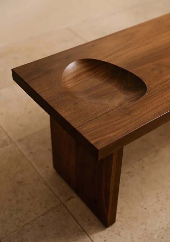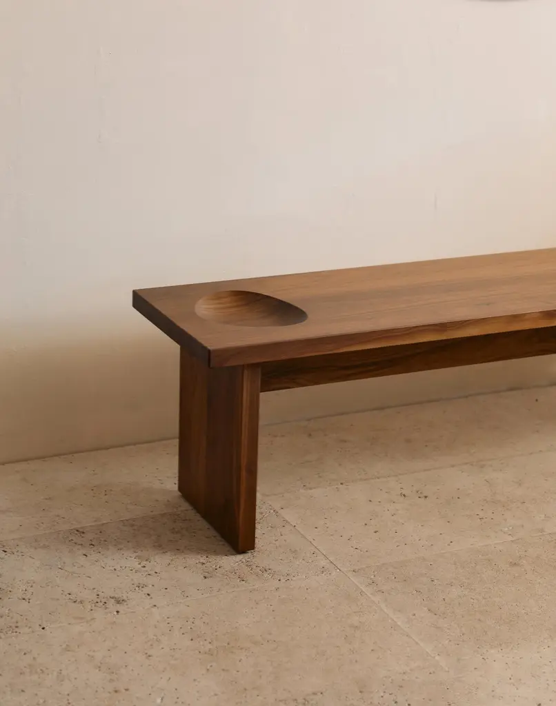 Timber Mazer Bench by Tom FeredayDimensions: W 190 x D 45 x H 50 cmMaterials: Solid Oak & Walnut. MAZER COLLECTION:Mazer represents a series of geometric sculptures, each a celebration of the fundamental beauty and natural variation of stone. Strict brutalist forms of the table and seating collection are juxtaposed by soft organic cutaways carving through the porous stone surfaces, revealing the natural beauty and character of travertine. Named after the medieval term ‘Mazer’ meaning bowl, the collection presents subtle organic forms proportioned for table and seating function designed for permanence. Porous formations of the stone’s structure act as an intentional disruption to the clean geometric forms of the series adding character and intrigue. The limited edition series was crafted from travertine and locally produced in Italy from a combination of machine and traditional hand made processes, each piece exhibiting its own unique characteristics and form with no one piece alike. Mazer is designed by Australian designer Tom Fereday exemplifying Fereday’s desire to honour materiality, combining form and function to produce enduring works.Tom Fereday develops products based on the principle of honest design, conveying a design process which celebrates the materials and manufacturing processes behind furniture and products, to design from the inside out. By using the materials and environment as a positive design constraint we guide intelligent and thoughtful design outcomes which connect with people through natural materials, tactile finishes and unique design. We strive to create enduring designs which are meaningful to people and their environment. Born in Australia, Tom Fereday grew up in England studying at the Wimbledon School of Art before moving to Sydney to complete an honours in Industrial Design at the University of Technology Sydney. Working across europe and Australia Tom Fereday went onto found his sole practice in 2012.AffiliationsSociety for Responsible Design (SRD)Design Institute of Australia (DIA)Awards2019 - House & Garden style awards - ETO Desk2018 - Idea Awards - SIA Chair - Highly Commended2018 - LAMP International lighting competition - Winner established designer2018 - Lane Crawford creative callout - Winner2018 - Good Design Awards - SIA chair - Gold winner2017 - Mercedes-Benz Design Award - SIA Chair - Winner2017 - International Design Award - SP01 collection - Honoree2017 - International Darc Awards - Mito Lamp - Winner best floor lamp2017 - ICFF NYCxDESIGN - Emerging Designer - Honoree2017 - A+Awards - Bow Chair - Finalist2017 - Archiproducts Design Selection - Stockholm Furniture Fair2016 - Good Design Award Chicago - Bow Chair - Winner2016 - Timber Design Awards - Pieman Collection - Winner excellence in timber design2016 - Good Design Award - MW1 Watch - Finalist2015 - Good Design Award - 3000 Collection2015 - Good Design Award - Best in category NTR Microphone2015 - Red Dot Design Awards - Best of the Best NTR Microphone2014 - Space + Moooi 2014 Design Residency2011 - H&G Style Awards 20112011 - Interior Design Excellence Awards 2011 - Finalist2011 - One Good Chair Competition Allt Chair2010 - Nominated by Triple J and ABC News as top 25 young achievers2010 - Australian Design Awards - Design Mark - Pebble Ottoman2010 - Launch Pad 10 with the Spli Stool - Finalist2009 - SOYA Awards including mentorship with Marc Newson2009 - SRD09 prize winner awarded by the Society for Responsible Design2009 - NSW Travelling Scholarship - Top three finalists2009 - International CIFIAL Awards ‘Feel the Planet Earth 08’ - Finalist2009 - Greenland Travelling Scholarship2008 - GOTYA Awards - Runner up2008 - Breville Young Designer Awards - Top three Finalist2008 - Electrolux Competition - Highly Commended2008 - Freedom Furniture Competition2007 - Treegugger + I.D. Magazine Award - Finalist2007 - Cormack Packaging Awards - FinalistExhibitions2018 - Orgatec - SIA chair launch by NAU - Cologne Germany 2018 - Makers Take - SIA + Jeanette chair - Brisbane2018 - Alt Material - Hull lounge - Melbourne2018 - AGM - SIA chair + Jeanette chair - Melbourne2018 - MADE Tom Fereday X Fiona Susanto solo exhibition - Melbourne2018 - Den Fair - Launch ETO / MITO / SIA / NOLA - Melbourne2018 - Good Design Vivid Festival - SIA Chair - Sydney2018 - ICFF - SIA chair launch NAU - New York2018 - Caroma collaboration - Alexandria flagship store - Sydney2018 - SP01 Outdoor Collection - Archiproducts showroom - Milan Design Week - Italy2018 - SIA chair limited edition - Local Milan - Milan Design Week - Italy2018 - Australian Design Centre - Interpretations Exhibition Pieman chair - Sydney2018 - Melbourne Design Week - SIA Chair - Melbourne2018 - Sydney Design Festival - Bow Bench - Sydney2018 - Cologne IMM - MITO + Bailey light - Rakumba Lighting - Cologne Germany2017 - Design Made Festival - Solo Exhibition + entrance installation - Sydney2017 - London Design Festival - MITO Light at Mint Gallery - London2017 - Clarance Prize - Bow Chair - Tasmania2017 - PROCESS solo exhibition - Saturday Indesign - Sydney 2017 - Tatami lounge exhibition - Project 82 - Sydney2017 - Local Milan Exhibtion - Australian Design Centre - Sydney2017 - Den Fair - Kvadrat Maharam collaboration with Local Design - Melbourne2017 - Den Fair - Mito / Wes / Hull / SP01 Outdoor / Pieman Chair / Tatami Lounge - Melbourne2017 - Maharam Launch - Bow Chair / Wes Lounge / MITO Light - Sydney2017 - Lost + Found exhibition - Pieman collection - Tasmania2017 - SP01 x Ladies & Gentleman pop-up exhibition - New York Design Week - USA2017 - SP01 Outdoor Collection - Archiproducts showroom - Milan Design Week - Italy2017 - Mito Light + Jeanette chair - Local Milan - Milan Design Week - Italy2017 - Undervalued Exhibition - Melbourne Design Week2017 - Shell Chair - Friends + Associates - Melbourne Design Week2017 - Solo exhibition - Stockholm Furniture Fair2016 - SP01 Outdoor Collection - Space Furniture - Mpavilion Melbourne2016 -