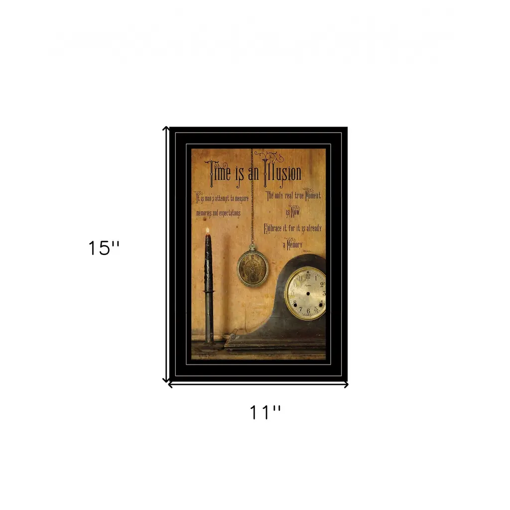 Unique and decorative, this time is an illusion 2 black framed print wall art will leave a lasting impression. This print is a visual artistic expression that allows you to decorate your space in style. Reproduced for you on paper, this hanging decorative accent will be a trendy and fashionable way to dress your walls. Hang on your wall to add some up to date fashion and decoration. Instantly liven up your space with this art that brings color and dimension to your walls. 15" H x 11" W x 1" D
