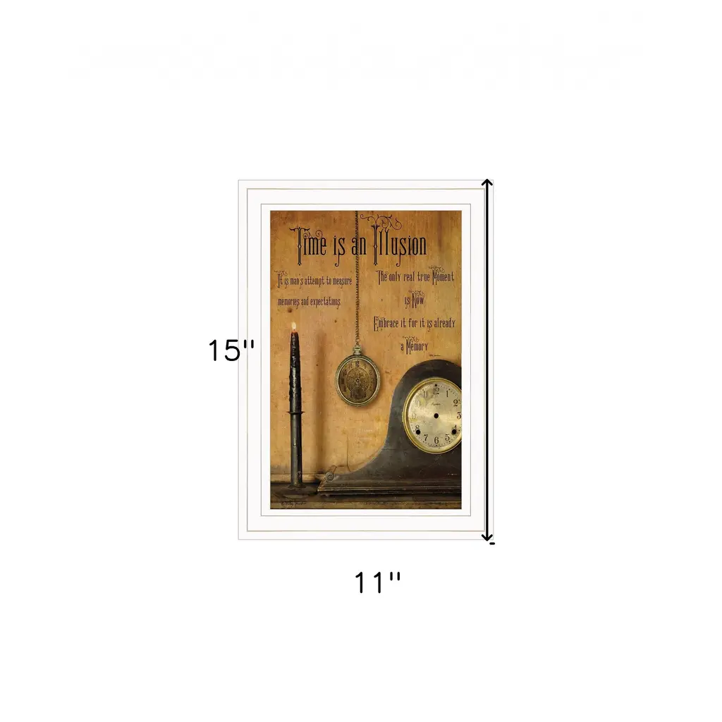 This time is an illusion 4 black framed print wall art will add a beautiful decorative accent to your decor. This print is a visual artistic expression that allows you to decorate your space in style. Reproduced for you on paper, this hanging decorative accent will be a trendy and fashionable way to dress your walls. Adding this hanging wall art to your space to make your room feel more finished and attractive. Utilize this opportunity to create a focal point in the room with this fabulous wall decor option. 27" H x 21" W x 1" D