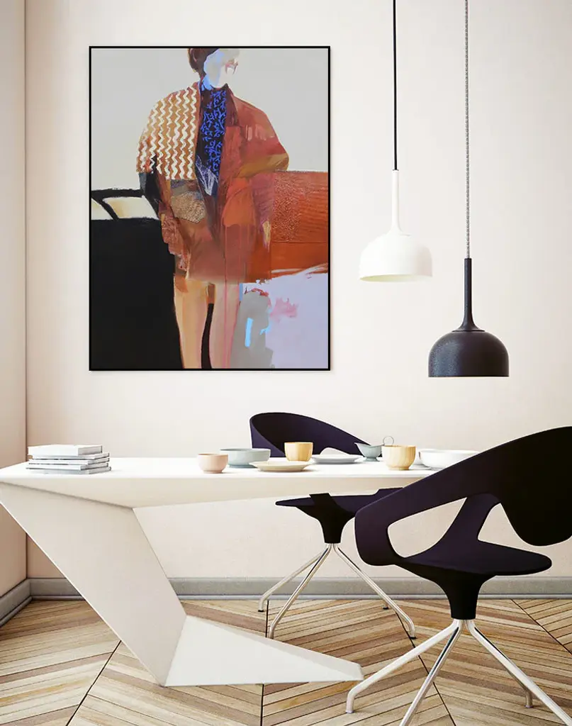 Your ready-to-hang artwork is printed on canvas then stretched and mounted to a 2 inch-thick, hand-stained black wood frame. Arrives at your door complete with an easy-to-use self-leveling hanging kit.