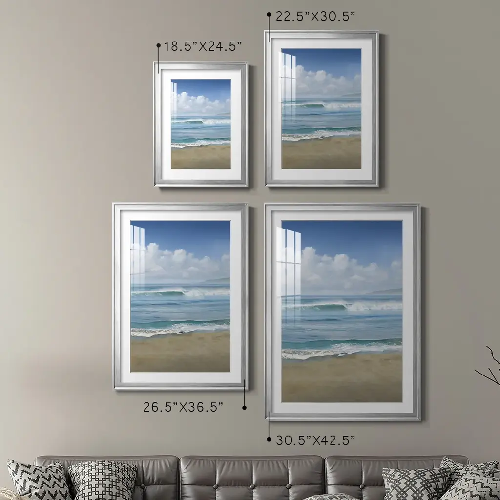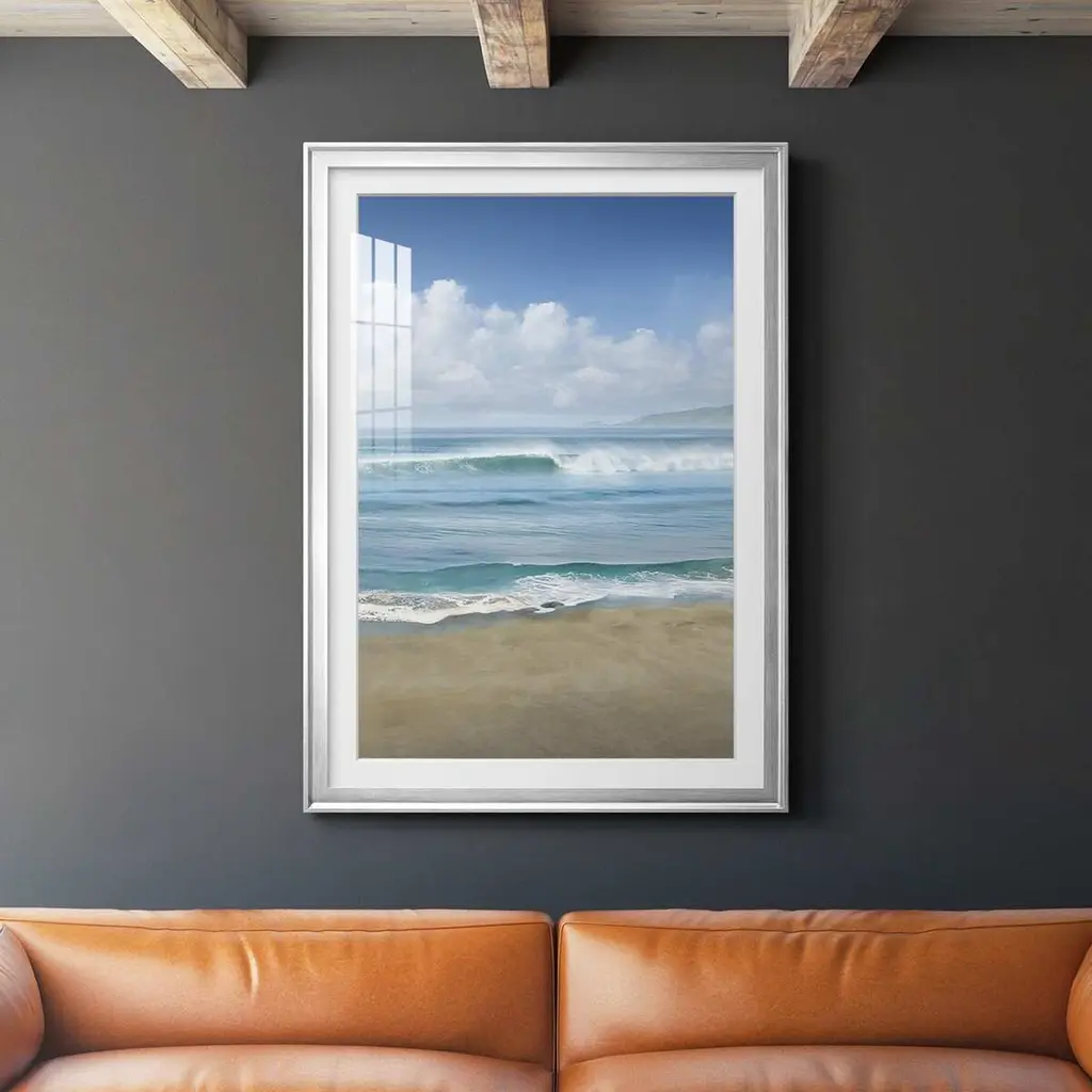 Timeless Waves Premium Framed Print - Ready to Hang A Premium Framed Print created to last. Framed in distressed wood and available in an array of sizes and colors Featuring a beveled a solid wood stretcher bar, each piece comes ready to hand 4 SIZES AVAILABLE 30.5''X42.5'' - Overall Size 26.5'X36.5'' - Overall Size 22.5''x30.5'' - Overall Size 18.5''x24.5'' - Overall Size Each piece is made to order. Each piece comes with hanging hardware. Made in the USA Ready to Hang Giclee Paper Print Acrylic Glass Beveled Matt Board