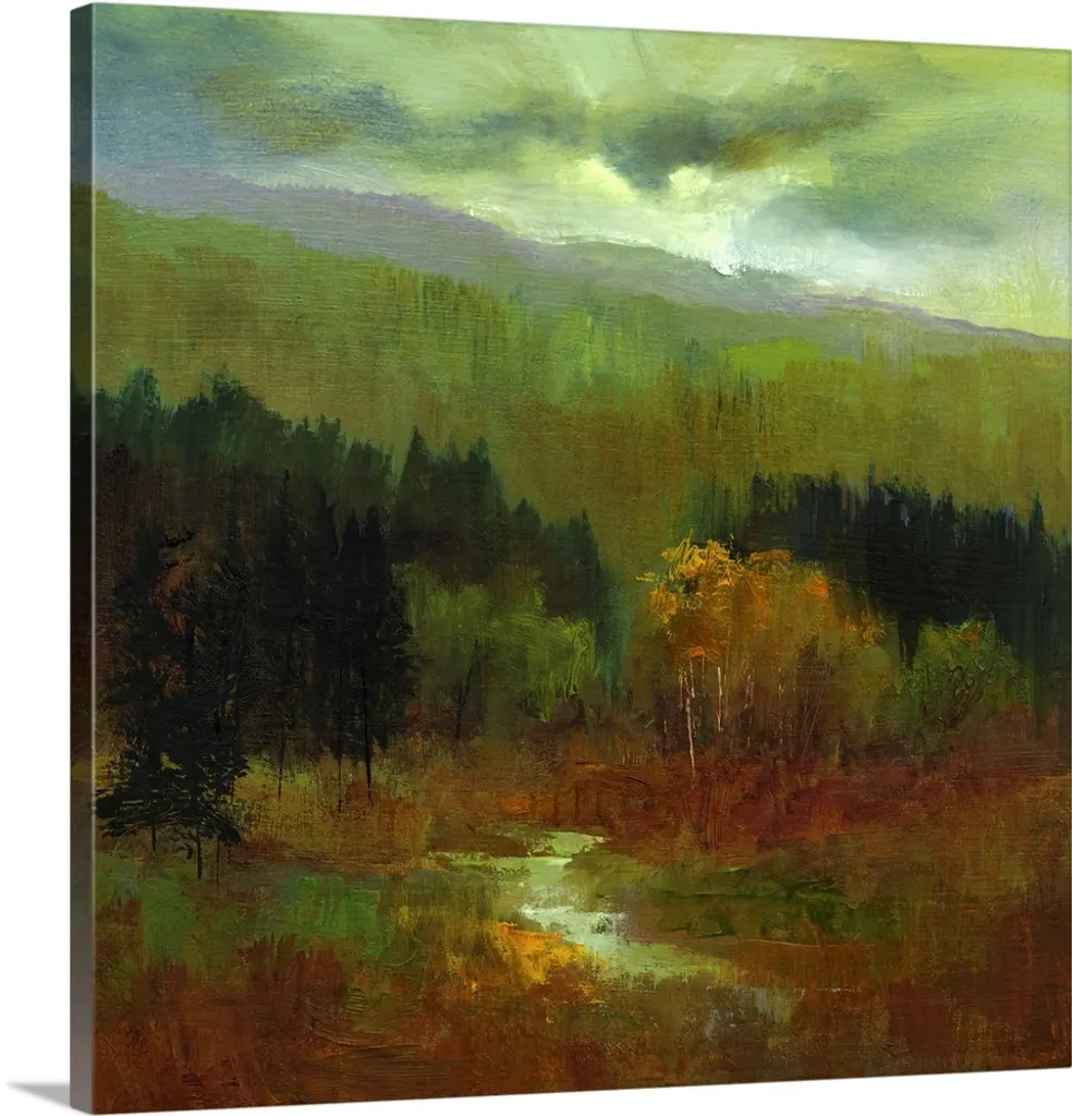 Mountain Creek I by Timothy O'Toole is a high quality piece of canvas artwork. The finished size of this piece is 24" X 24", and it has a depth 1.5". There is a UV protective coating over the entire image, and it is ready to hang on your wall with no hardware required.