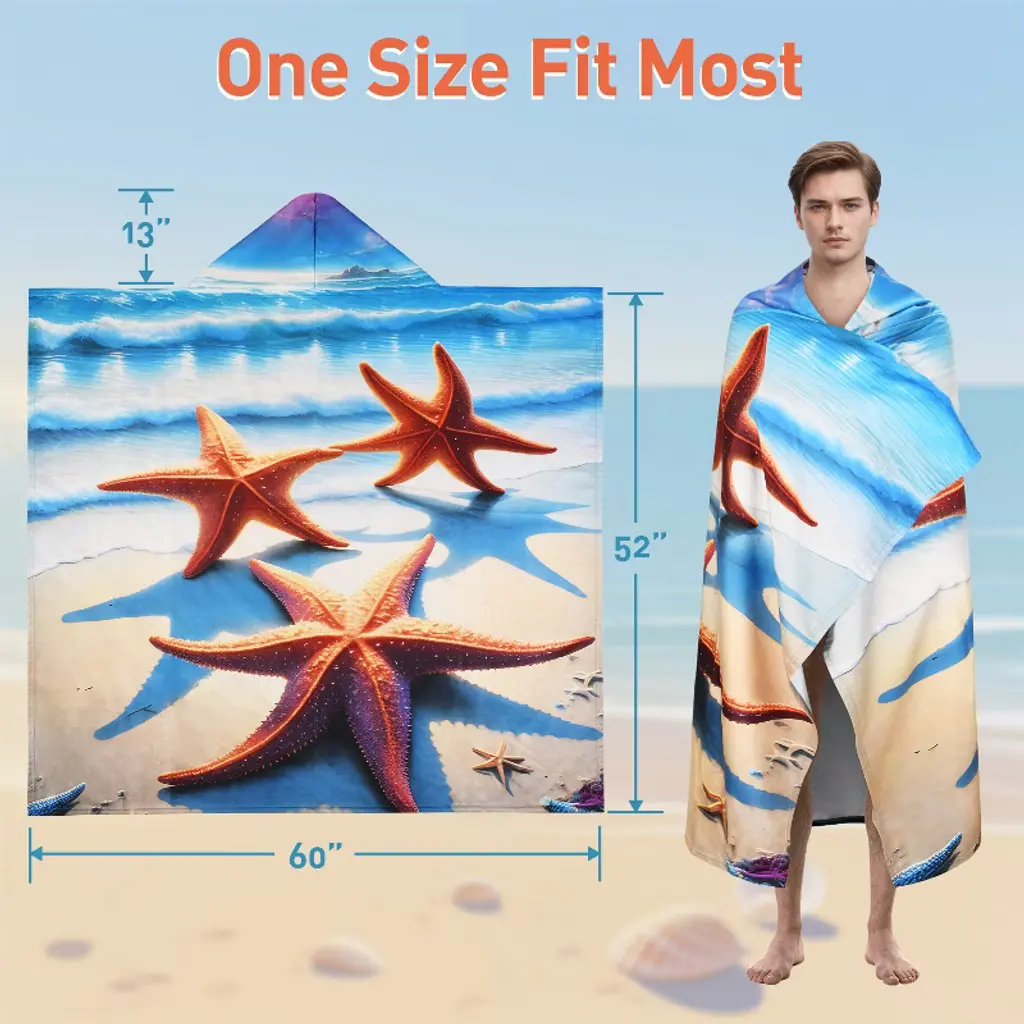 Elevate your coastal look with our fashion-forward hooded cape towel, Choose from striking patterns like sharks, surfboards, mermaids. Tirrinia Lightweight Beach Cape Towel With Hood for Adult Quick Dry Travel Surfer Pool Camping Beach Accessories Vacation Essential summer our wearable beach towels is gentle on the skin and rapidly absorbs moisture, ensuring swift drying post-swim. Beach Cape Towel With Hood Features: -Material: 88% Polyester and 12% Polyamide. Super soft and dries fast Microfiber. -Machine washable: Wash with similar colors.