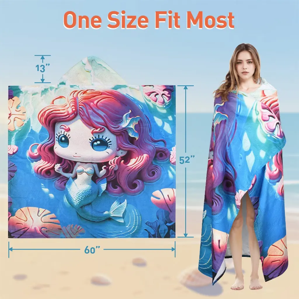 Elevate your coastal look with our fashion-forward hooded cape towel, Choose from striking patterns like sharks, surfboards, mermaids. Tirrinia Lightweight Beach Cape Towel With Hood for Adult Quick Dry Travel Surfer Pool Camping Beach Accessories Vacation Essential summer our wearable beach towels is gentle on the skin and rapidly absorbs moisture, ensuring swift drying post-swim. Beach Cape Towel With Hood Features: -Material: 88% Polyester and 12% Polyamide. Super soft and dries fast Microfiber. -Machine washable: Wash with similar colors.