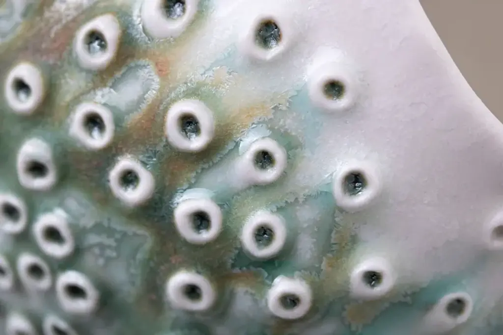 PORIFERAThe texture, inspired by corals, celebrates the Ocean, astonishing for the exotic shapes of its creatures. Vases, bowls and wall decoration plates to create an infinite number of interior design solutions. Irregular surfaces and metal oxides create unrepeatable chromatic effects, making each object a unique piece.