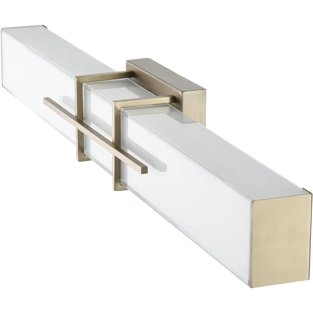 A modern Asian-inspired metal base infuses the Tocco Collection of vanity lighting with the perfect touch of flair. The delicate metalwork creates a unique frame for the opal white glass shade and is lit by an energy-saving LED light. Finished in brushed nickel or modern gold, the fixture casts a warm and even glow over any surface, whether mounted horizontally or vertically.