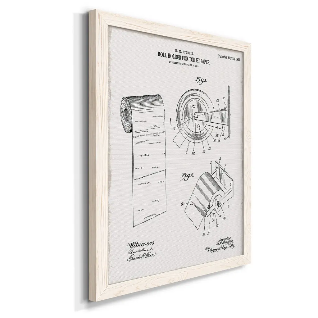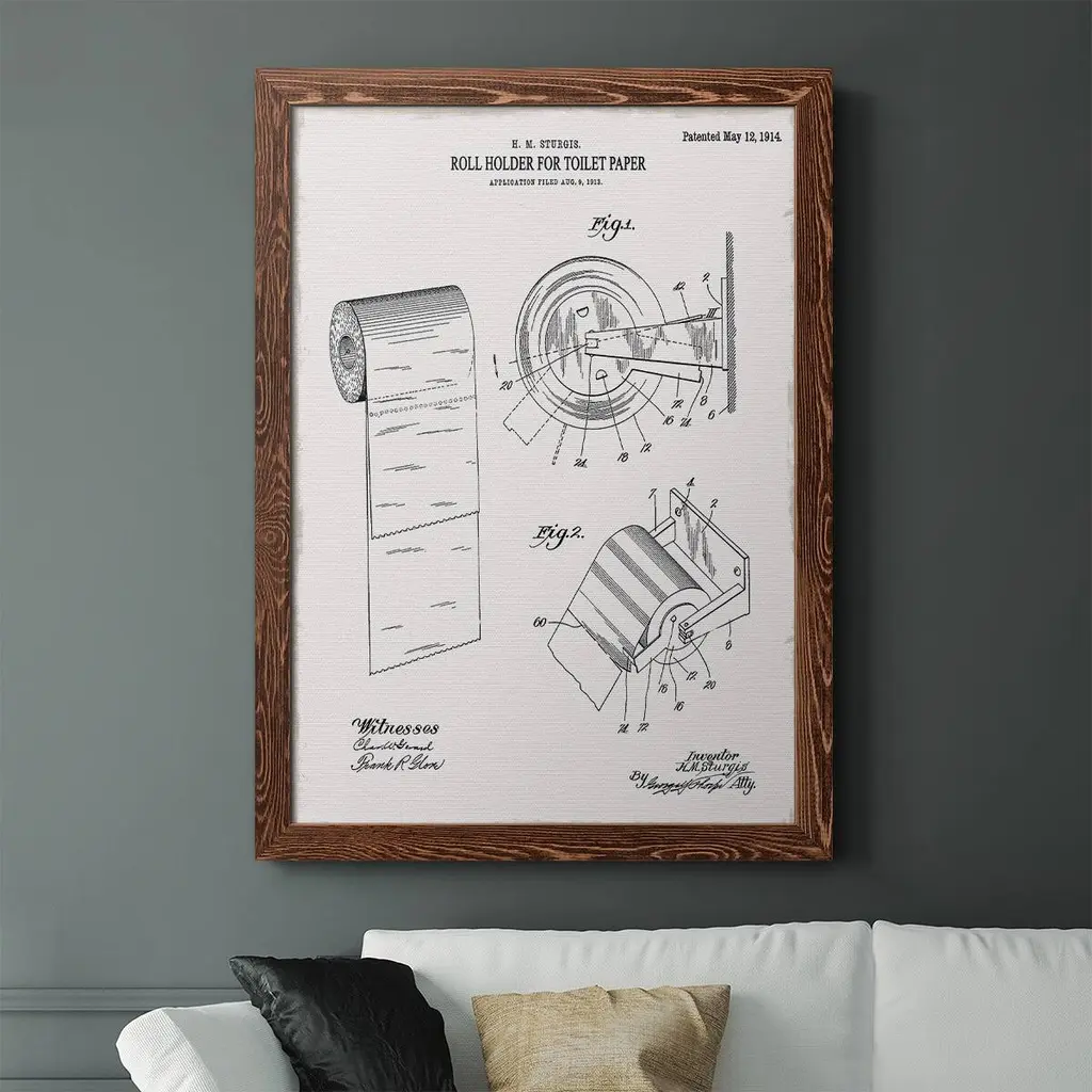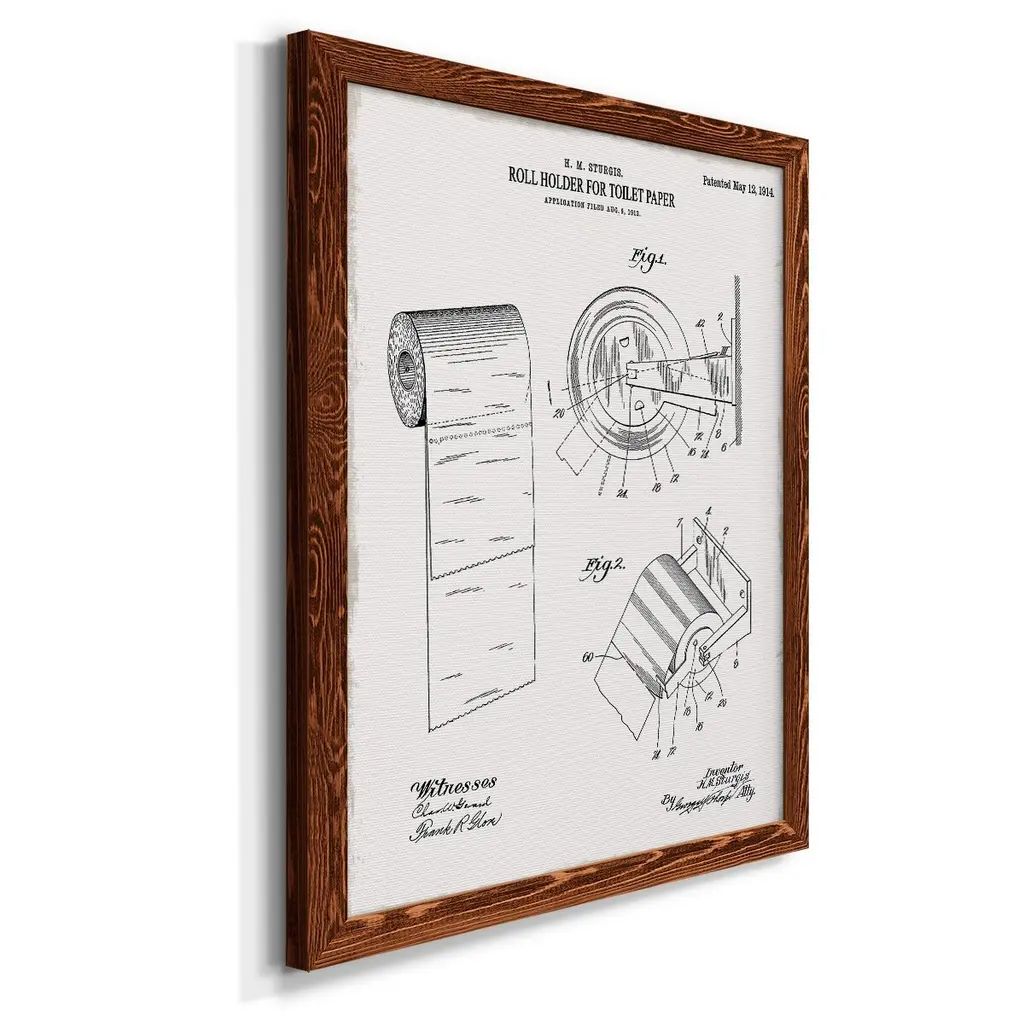 Toilet Paper Patent Iii-Premium Framed Canvas - Ready To Hang - 27.5x37.5 - Walnut