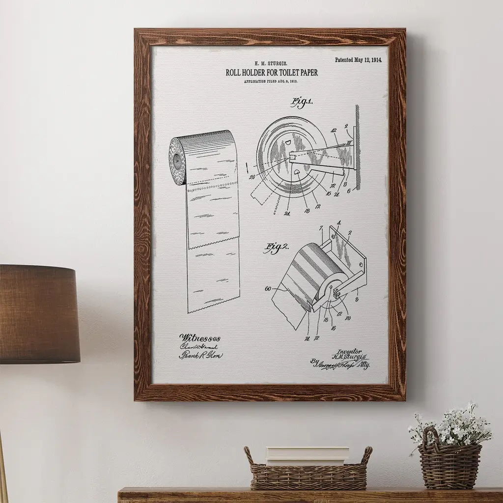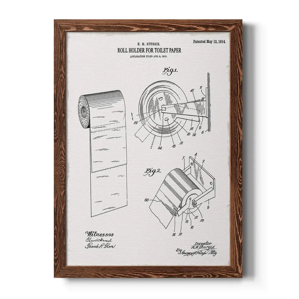 Toilet Paper Patent Iii-Premium Framed Canvas - Ready To Hang - 31.5x43.5 - Walnut