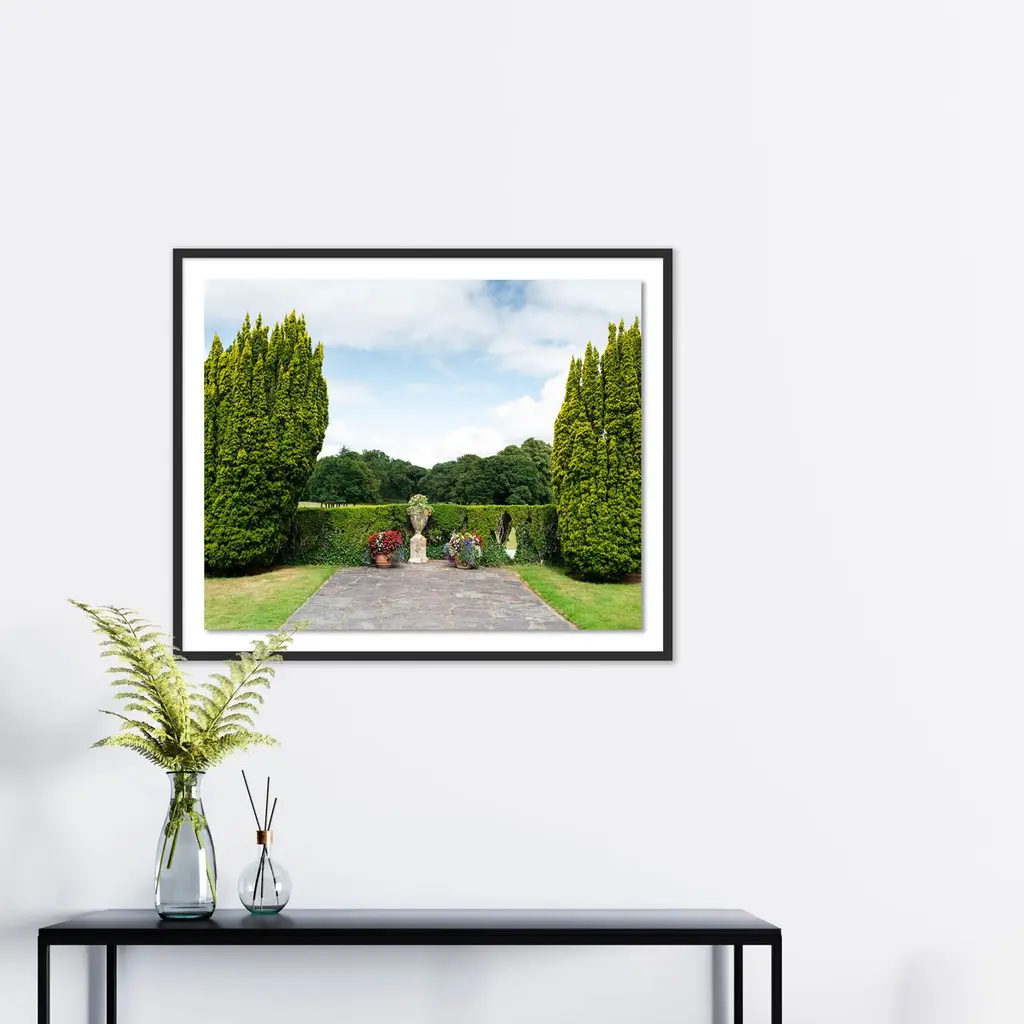 Tommy Kwak's photograph bring the verdant beauty of Ireland's Altamont Gardens to your home. Certain to delight anyone who loves formal gardens or country manors, the giclée print arrives framed and ready to hang.Photographer Tommy Kwak specializes in ethereal large-scale landscapes. A two-time participant in the SÍM Residency program in Reykjavík, he has had his work shown in New York as well as Iceland and has received commissions from, among others, fashion house Louis Vuitton.