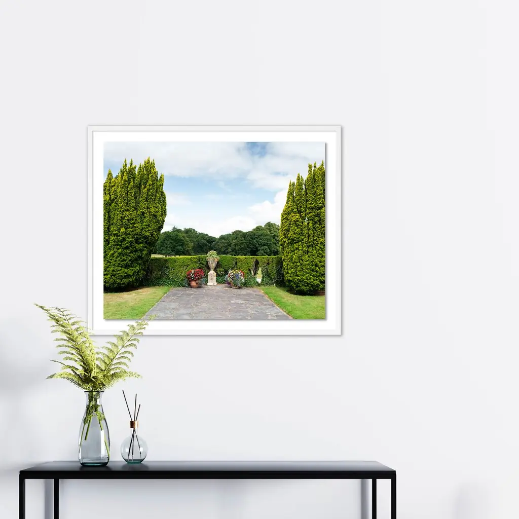 Tommy Kwak's photograph bring the verdant beauty of Ireland's Altamont Gardens to your home. Certain to delight anyone who loves formal gardens or country manors, the giclée print arrives framed and ready to hang.Photographer Tommy Kwak specializes in ethereal large-scale landscapes. A two-time participant in the SÍM Residency program in Reykjavík, he has had his work shown in New York as well as Iceland and has received commissions from, among others, fashion house Louis Vuitton.