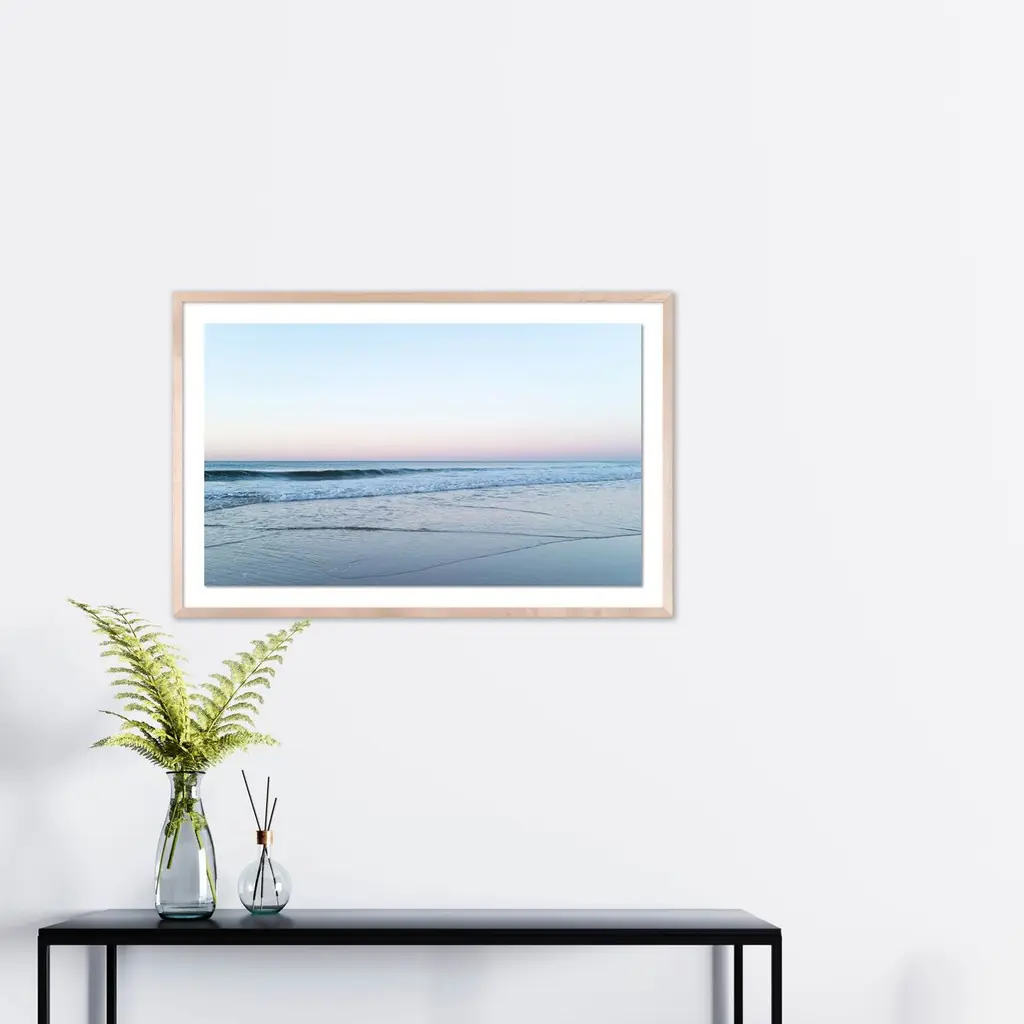 Tommy Kwak's photograph of placid waves lapping onto an Amagansett beach depicts an almost otherworldly serenity. The giclée print arrives framed and ready to hang.Photographer Tommy Kwak specializes in ethereal large-scale landscapes. A two-time participant in the SÍM Residency program in Reykjavík, he has had his work shown in New York as well as Iceland and has received commissions from, among others, fashion house Louis Vuitton.