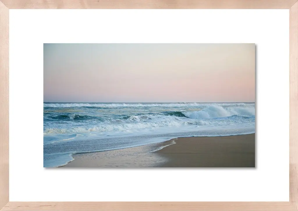 Tommy Kwak's photograph of placid waves lapping onto an Amagansett beach depicts an almost otherworldly serenity. The giclée print arrives framed and ready to hang.Photographer Tommy Kwak specializes in ethereal large-scale landscapes. A two-time participant in the SÍM Residency program in Reykjavík, he has had his work shown in New York as well as Iceland and has received commissions from, among others, fashion house Louis Vuitton.