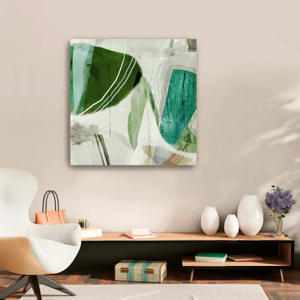 Enhance your living space with this captivating "Tomorrow Never Knows" canvas art by Gemma Bardot . Featuring a rich palette of green tones and diverse elements, this artwork adds depth and intrigue to any room. The dynamic composition and vibrant hues create a striking visual experience, making it a perfect statement piece for both contemporary and classic interiors. Available in black frame, dark walnut frame, oak frame, or as a wrapped canvas. Our Gallery Wrap Canvas Prints are proudly assembled with high quality materials in California, USA. Each piece is printed on a thick, archival grade canvas using Giclee technology. It is then hand-stretched by our experienced artisans over solid wood bars, which will not warp over time. The final product is a piece personally crafted for you to confidently display on your wall. Care and Assembly: Ensure that the location of your piece has little to no exposure to heat, sunlight, and moisture. Wipe clean, only if needed. Each piece includes a sawtooth hanger to hang on your wall horizontally.