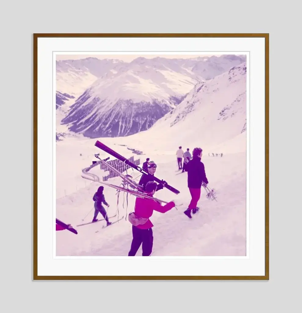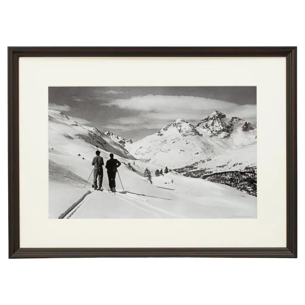 Mountain Top 1954 by Toni Frissell Skiers make their way to a run, Klosters, Switzerland, 1954. Antoinette Frissell Bacon (March 10, 1907 – April 17, 1988), known as Toni Frissell, was an American photographer, known for her fashion photography, World War II photographs, and portraits of famous Americans, Europeans, children, and women from all walks of life. Paper size - 20 x 20 inches / 50 x 50 cm Approximate frame size - 27 x 27 inches / 68 x 68 cm c print Framed in Brown solid wood frame with mount and glazing - ready to hang Printed later I have official proof of authenticity such as vintage catalogs, designer records, or other literature sources and take full responsibility for any authenticity issues arising from misattribution