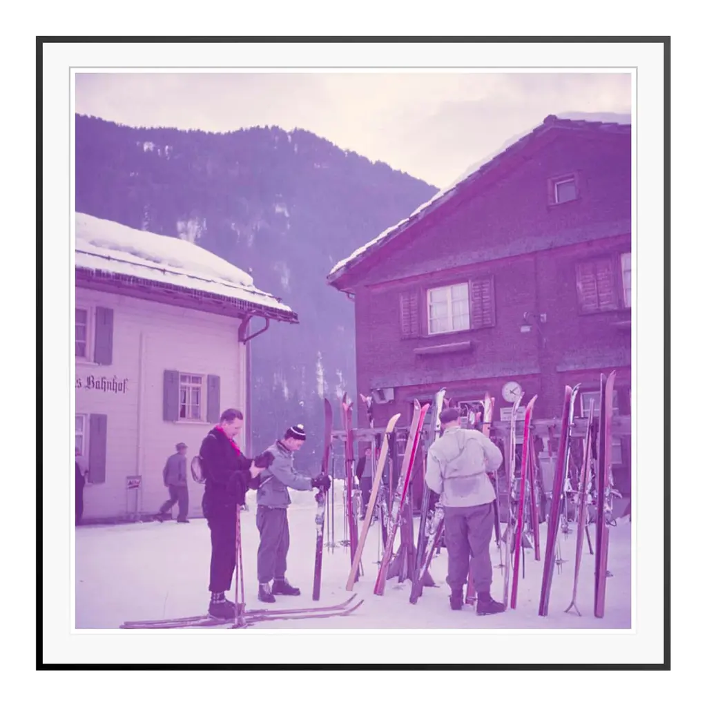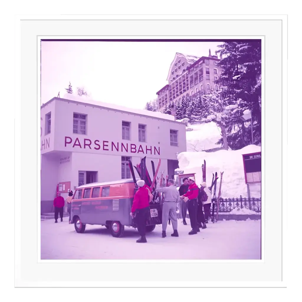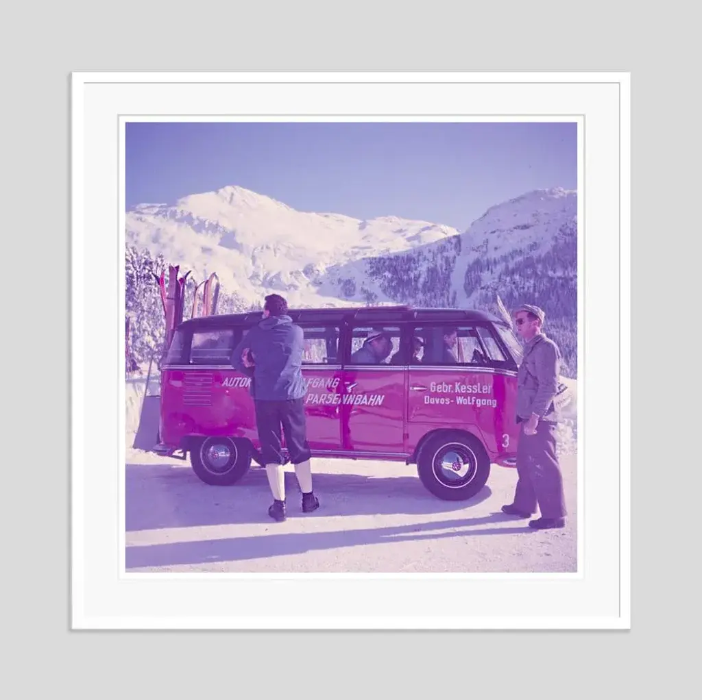 Ski Bus 1951 by Toni Frissell Skiers take a lift in a VW camper van, Klosters, Switzerland, 1951 Antoinette Frissell Bacon (March 10, 1907 – April 17, 1988), known as Toni Frissell, was an American photographer, known for her fashion photography, World War II photographs, and portraits of famous Americans, Europeans, children, and women from all walks of life. . Paper size - 20 x 20 inches / 50 x 50 cm Approximate frame size - 27 x 27 inches / 68 x 68 cm c print Framed in white solid wood frame with mount and glazing - ready to hang Printed later I have official proof of authenticity such as vintage catalogs, designer records, or other literature sources and take full responsibility for any authenticity issues arising from misattribution