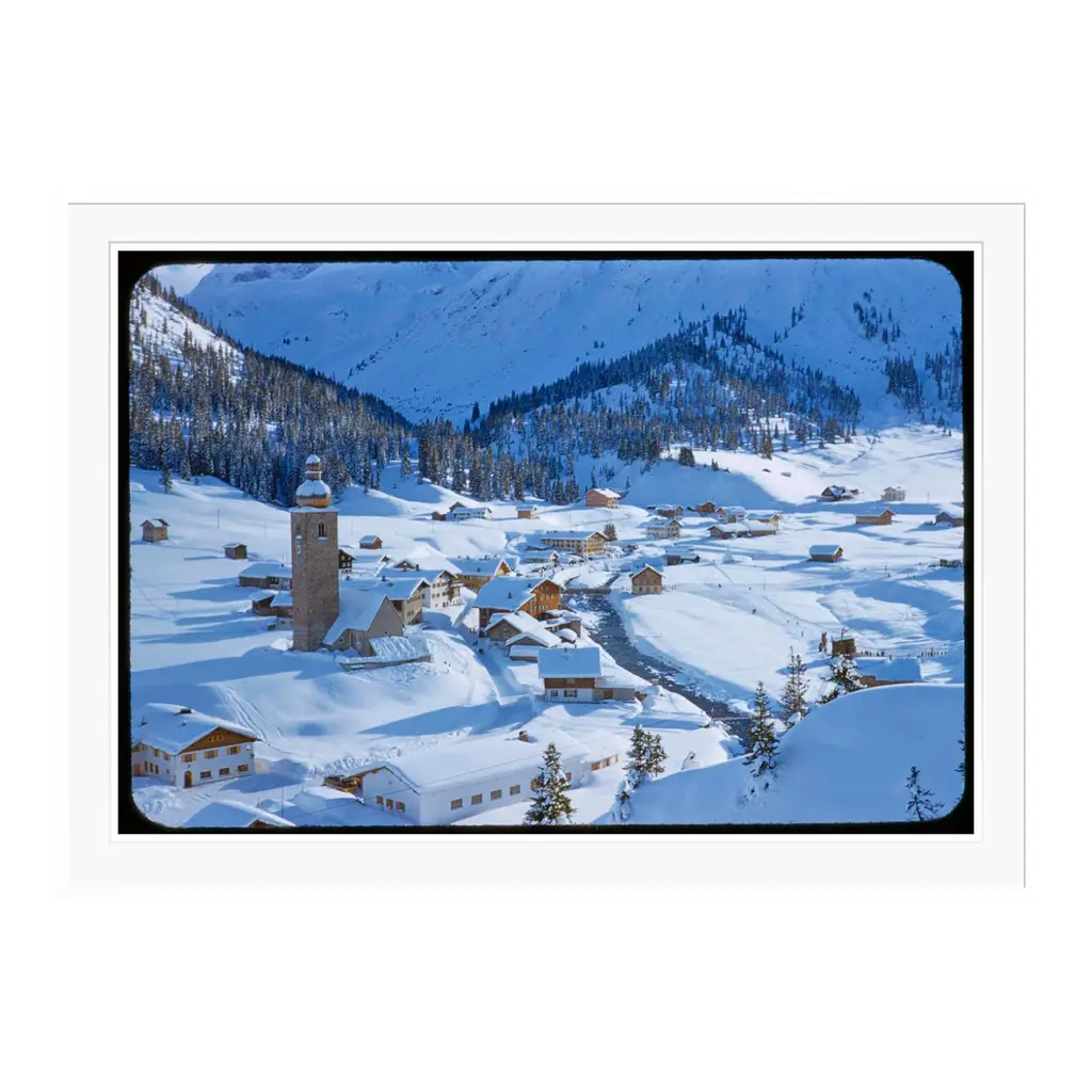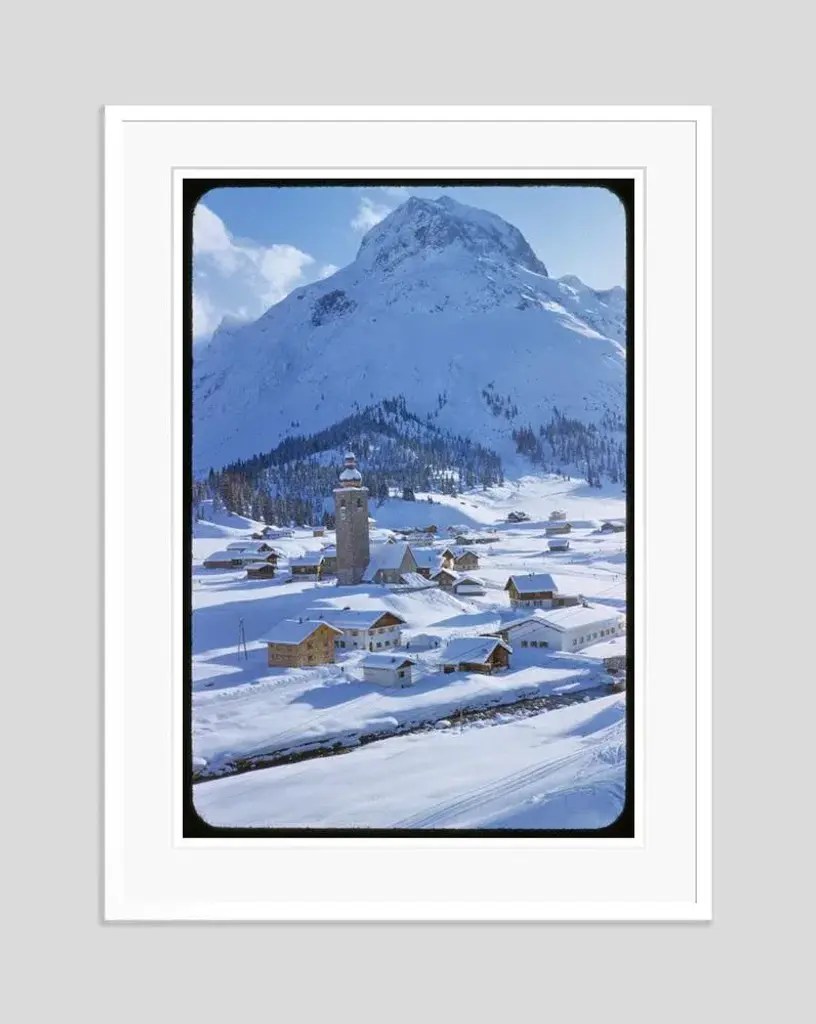 St. Anton In Winter 1955 by Toni Frissell Mountains tower over the St. Anton ski resort in Austria, 1955. Antoinette Frissell Bacon (March 10, 1907 – April 17, 1988), known as Toni Frissell, was an American photographer, known for her fashion photography, World War II photographs, and portraits of famous Americans, Europeans, children, and women from all walks of life. Paper size - 16 x 12 inches / 40 x 30 cm Approximate frame size - 23 x 19 inches / 58 x 48 cm c print Framed in white solid wood frame with mount and glazing - ready to hang Printed later I have official proof of authenticity such as vintage catalogs, designer records, or other literature sources and take full responsibility for any authenticity issues arising from misattribution