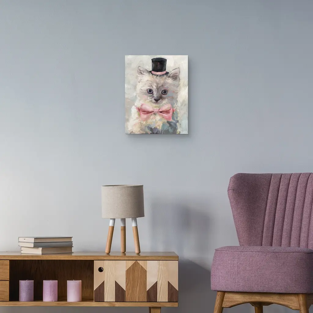 How can anyone resist a snuggly furball with giant eyes in a bow tie and top hat! We say it's nearly impossible. Studio Arts Top Hat Cats I canvas art print features a domesticated feline adorably dressed to the nines. The cat lover in your life will be forever grateful for this stunning wall decor.