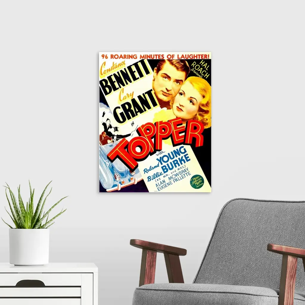 TOPPER, from left: Cary Grant, Constance Bennett on window card, 1937