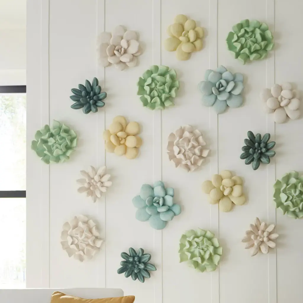 Masquerading as a winsome fleshy plant that thrives in arid climates, the Topsy-Turvy Jade Succulent Wall Art is a floral sculpture for the wall made of composite in a sage finish. We offer a number of colors and sizes in the succulent category, which makes them perfect for grouping in a gallery wall installation. Choose multiples of these light green flowers in the same color or mix and match hues for a livelier display. Each of these reflects the ethos that Phillips Collection personifies: modern organic.