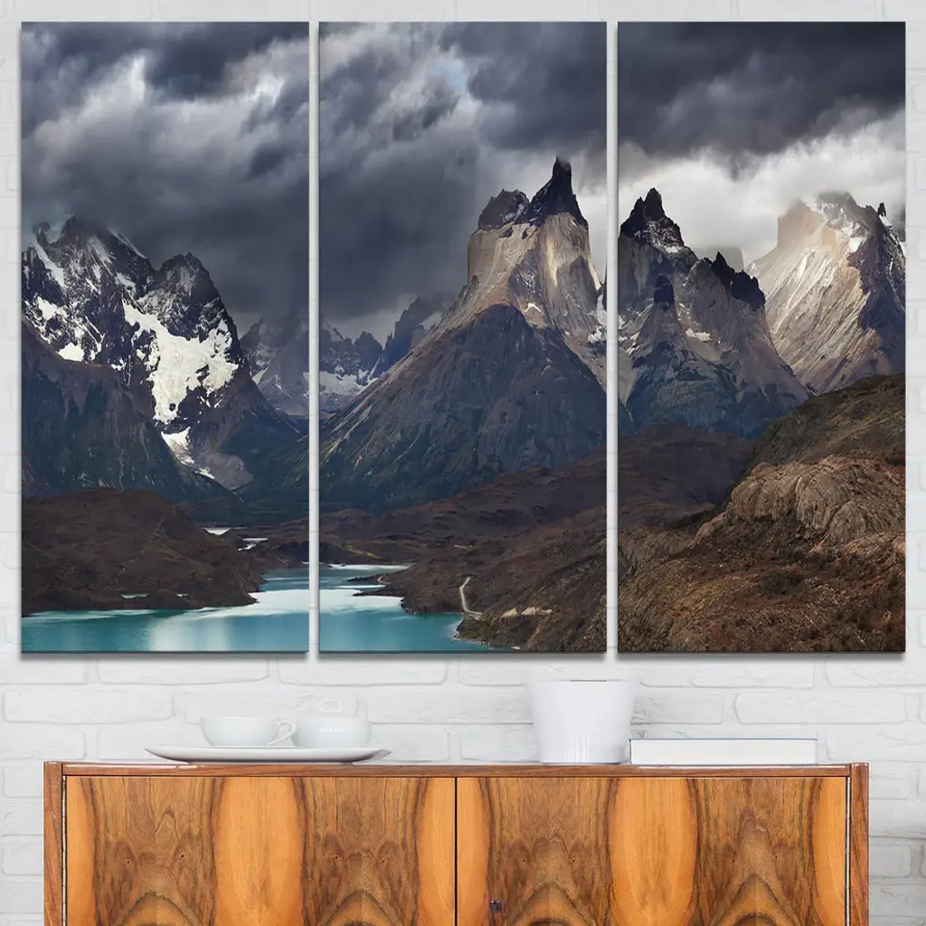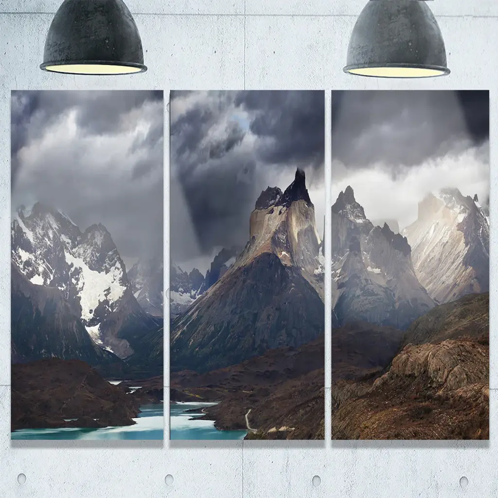 "Torres Del Paine, Cuernos Mountains" Photo Metal Wall Art, 3 Panels, 36"x28"