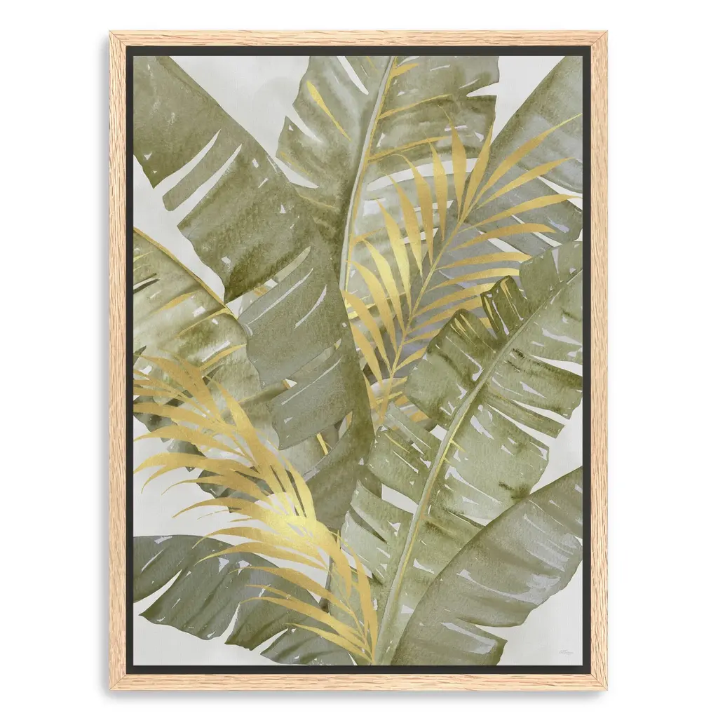 Touch Of Gold Banana Leaves Ii Canvas Giclee - Framed / Dark Walnut / 24x32