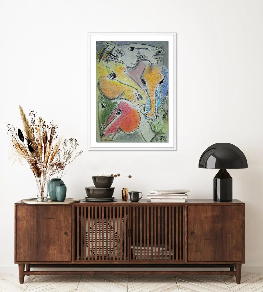 Tower of Horses by Donna Bernstein, Art Print in White Frame, Medium Overall Size: 27x36 Frame Color: White