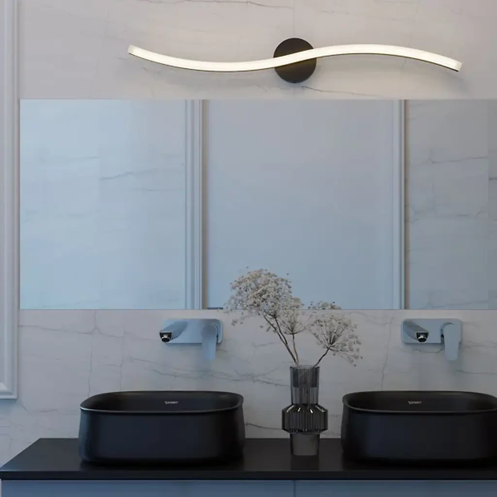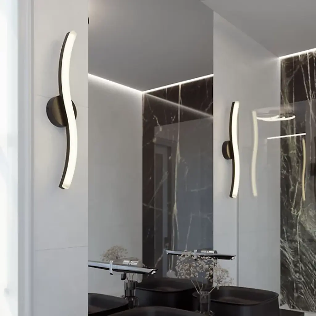 The notion of “leaving no trace” on the environment is nearly personified in the Trace LED Vanity Light from AFX. A subtle idea brought to reality, the curving lines of this vanity light seem to flow and ebb like lines traced in the sand. A slim backplate attaches to the wall, barely there in sight as it holds the LED lighting element. Dim the vanity light’s lumens as needed with the dimmer function.