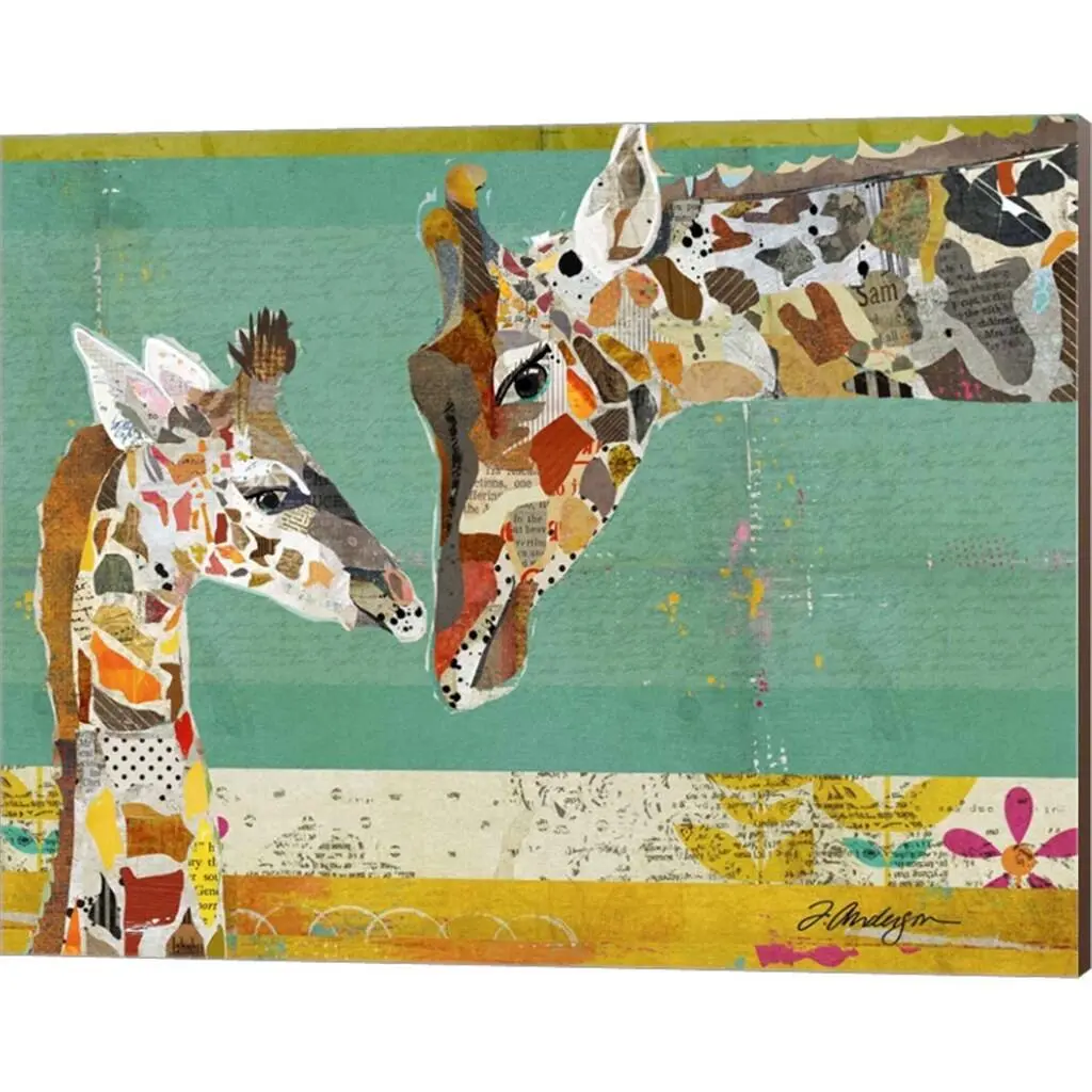 Giraffe and Calf by Traci Anderson is a high quality piece of canvas artwork. The finished size of this piece is 20" X 16", and it has a depth 0.75" with nutmeg painted sides. There is a UV protective coating over the entire image, and it is ready to hang on your wall with a standard drywall screw (not included). 100% Satisfaction Guaranteed.