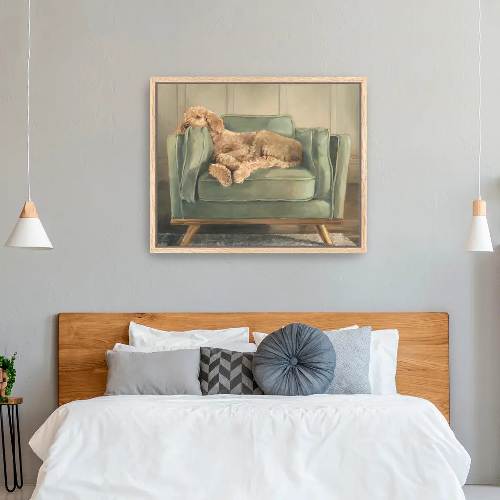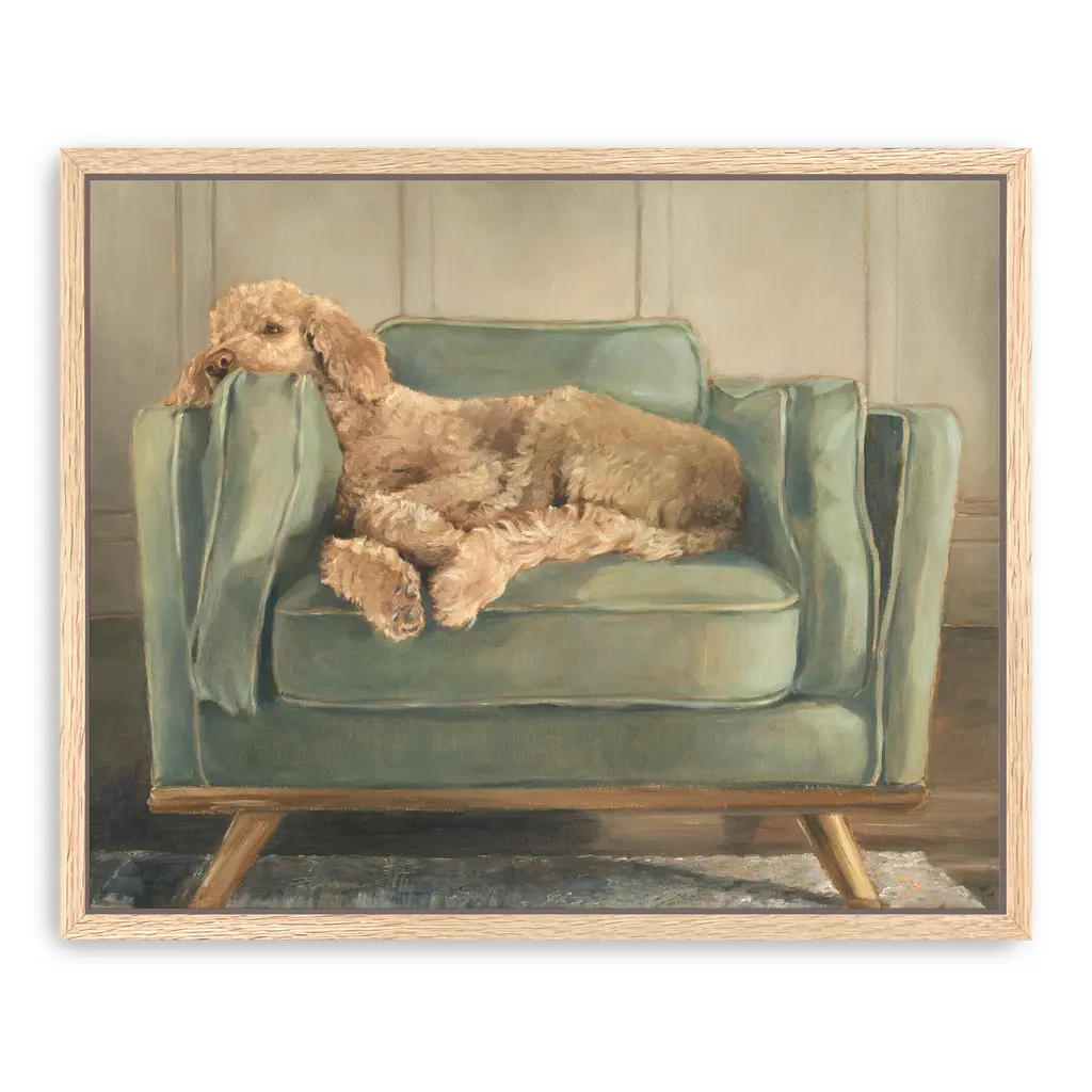 This heartwarming canvas portrays a peaceful pup curled up on the sofa, bringing warmth and coziness to any space. Our Gallery Wrap Canvas Prints are proudly assembled with high quality materials in California, USA. Each piece is printed on a thick, archival grade canvas using Giclee technology. It is then hand-stretched by our experienced artisans over solid wood bars, which will not warp over time. The final product is a piece personally crafted for you to confidently display on your wall. Care and Assembly: Ensure that the location of your piece has little to no exposure to heat, sunlight, and moisture. Wipe clean, only if needed. Each piece includes a sawtooth hanger to hang on your wall horizontally.
